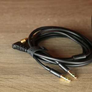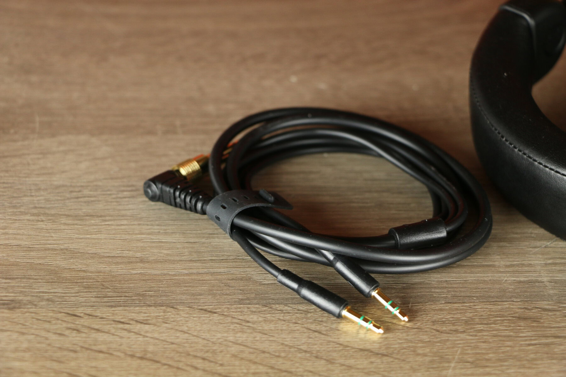 De HE-R10D wordt geleverd met drie kabels: een 1 meter 3,5 mm naar 3,5 mm kabel, een 3 meter kabel met een 6,35 mm jack en een 3 meter kabel met een gebalanceerde XLR-connector.