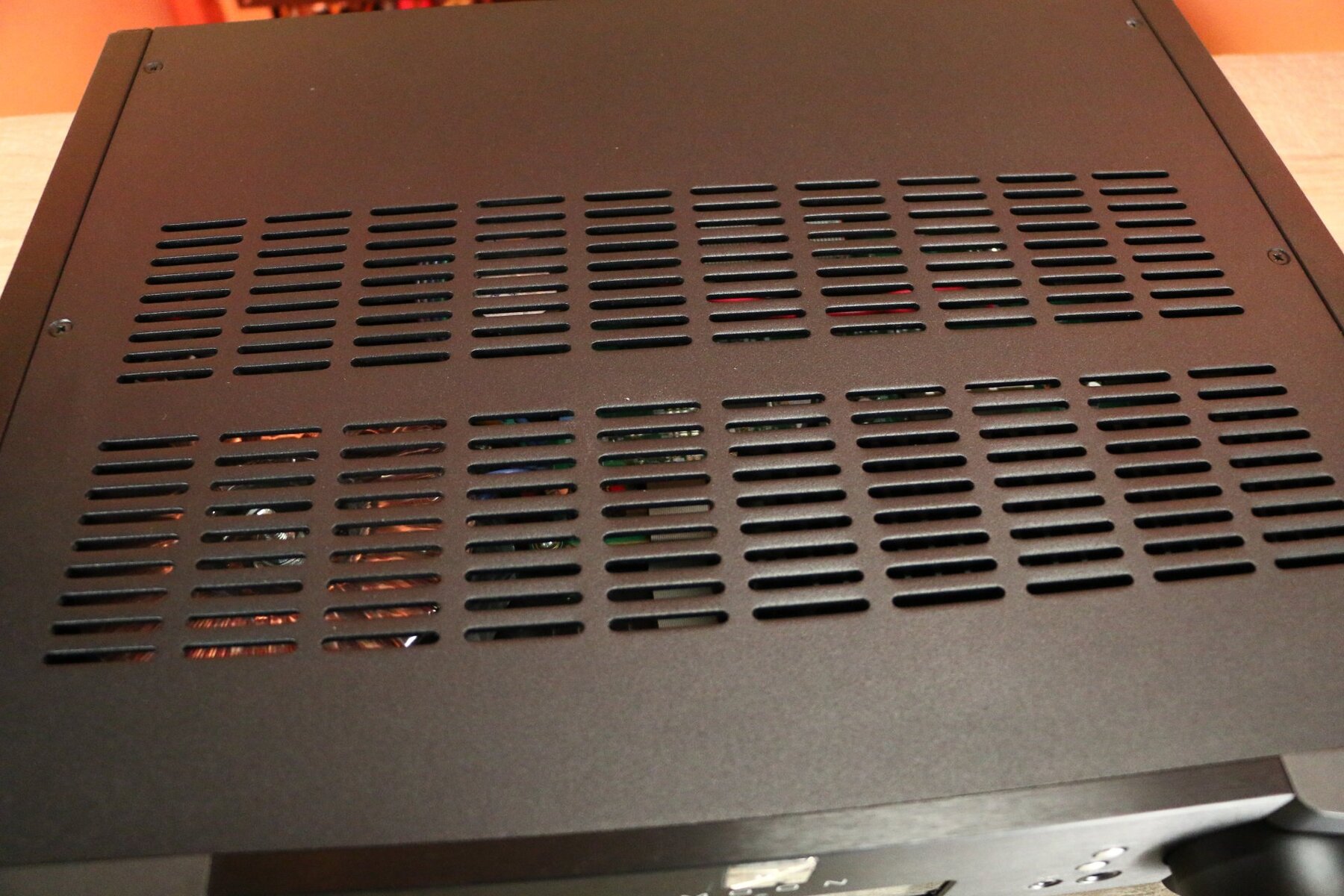 Möchten Sie sie trotzdem lieber außer Sichtweite platzieren? Es gibt die Möglichkeit, das Infrarotsignal der Fernbedienung durchzuschleifen. Sie schließen einen Infrarot-Extender an dieses Gerät an und können die Fernbedienung auch dann verwenden, wenn sich das Gerät in einem Schrank befindet. Stellen Sie sicher, dass eine ausreichende Belüftung/Luftströmung vorhanden ist.
