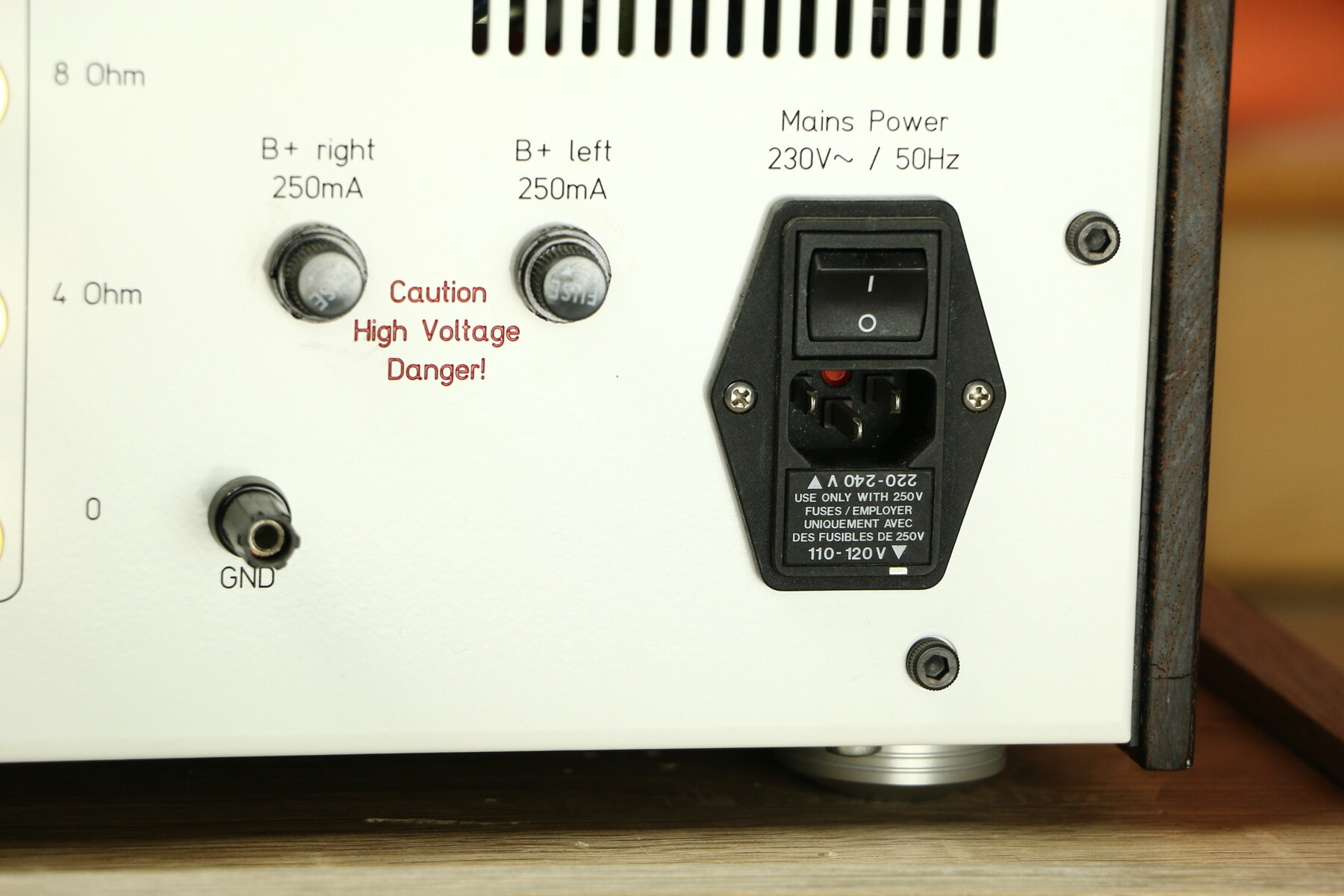 Bij de inschakeling loopt de versterker namelijk een tijd-gestuurd protocol af dat de buizen voorgloeit en langzaam opvoert tot de gewenste spanning om maximale levensduur te garanderen. Dit totale inschakelproces duurt ca. 5 minuten en is op de meters in het frontpaneel te volgen (totdat er 220mV is bereikt).