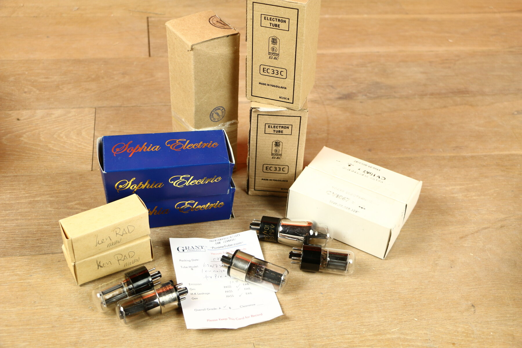 De allerbeste buizenbezettingen, bijvoorbeeld, NOS GEC 6J5GT’s, Sofia Electric Blue bottles 6SN7’s en Ulyanovsk military spec gematchte 6C33C-B’s. (We hebben nog een zeer fraaie extra set beschikbaar ook.)