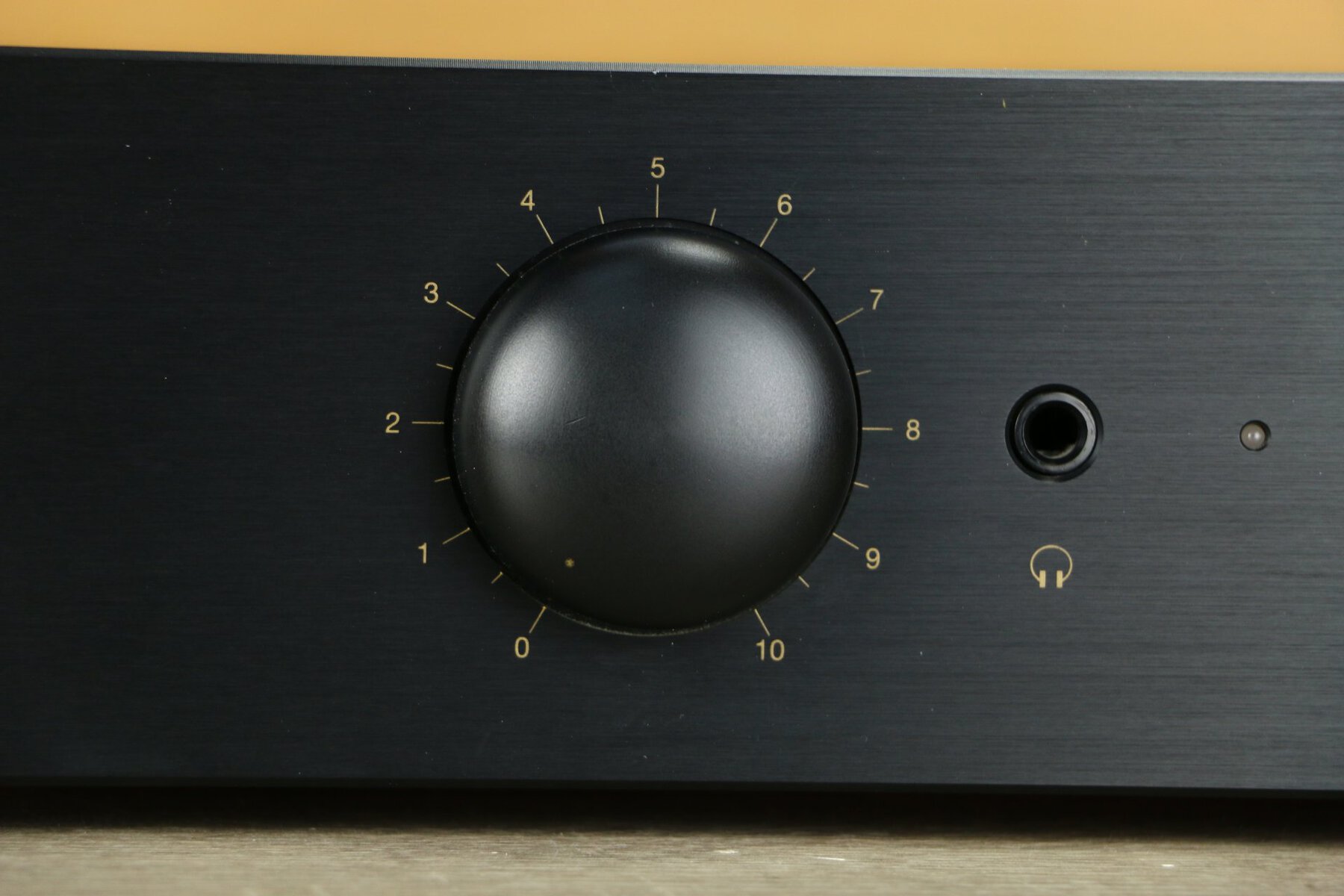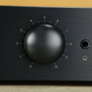 The IN100 features a 6.35 mm headphone jack on the front panel, allowing easy connection of headphones for personal listening experiences.