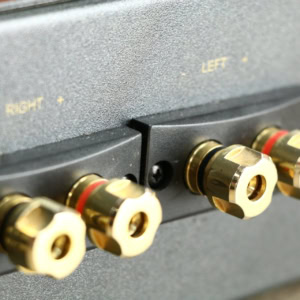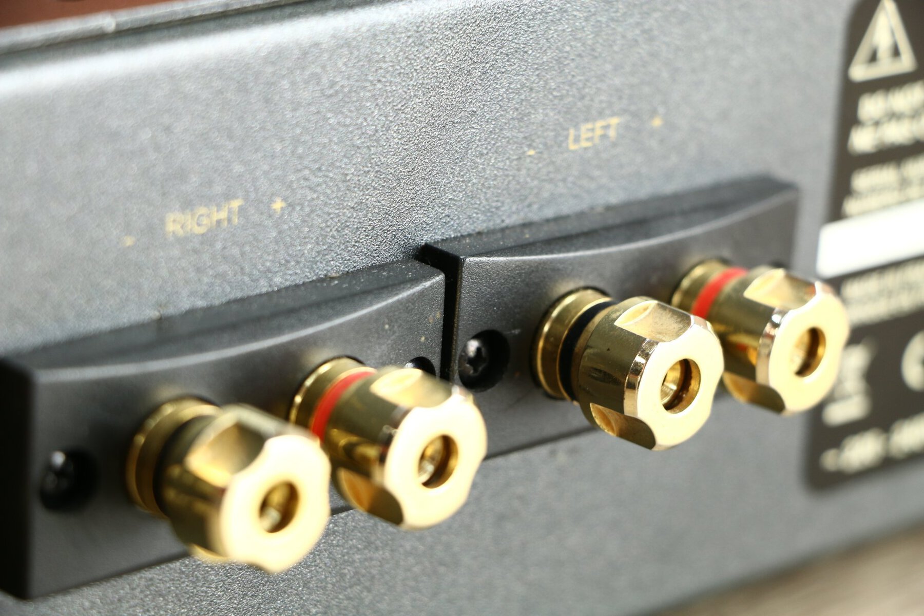 The IN100 features separate speaker terminals for the left and right channels, suitable for connecting standard speaker cables with banana plugs or spades.