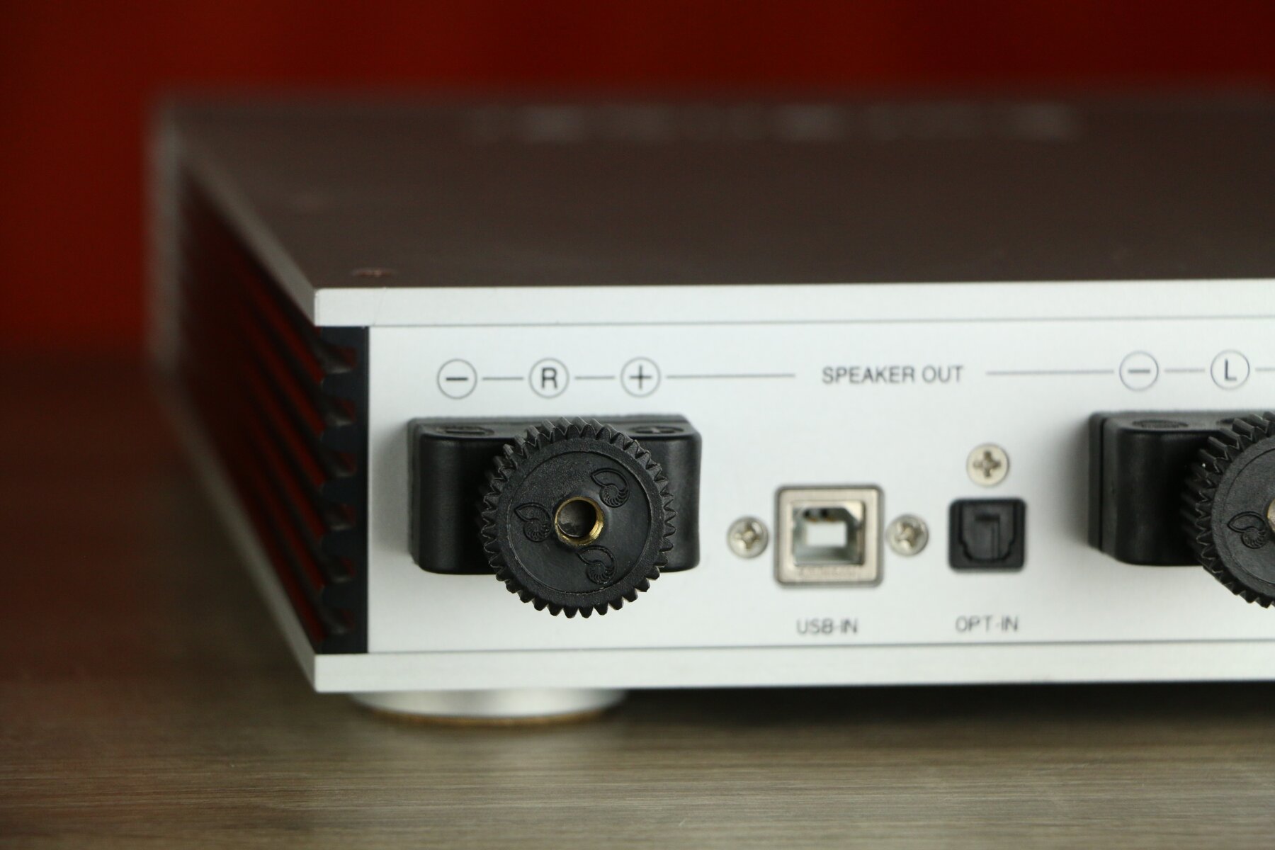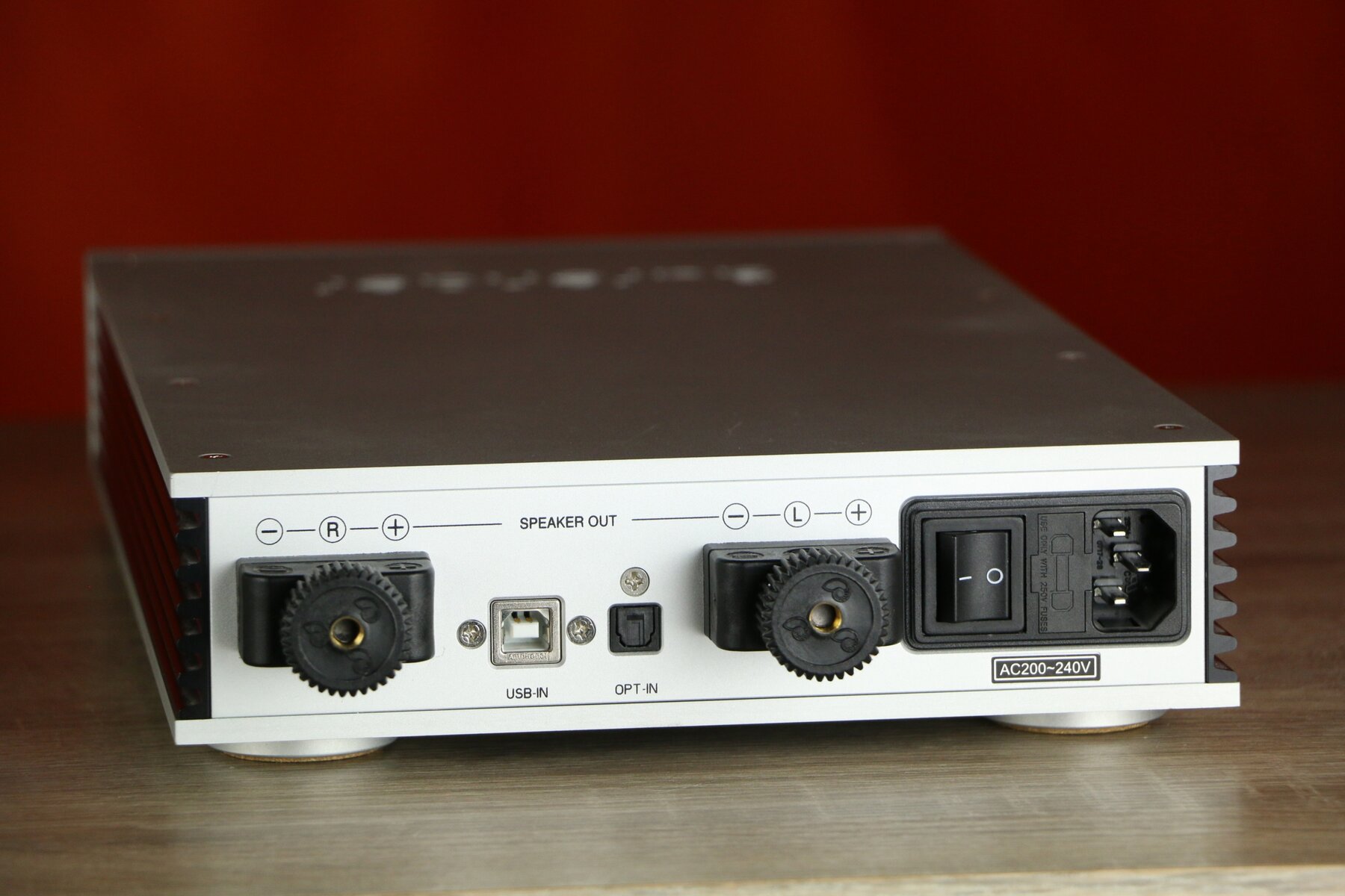This unit combines a DAC, preamplifier and power amplifier in one housing. It delivers 2 x 100 W at 8 ohms with a total harmonic distortion plus noise (THD+N) of 0.01%. The frequency range runs from 20 Hz to 20 kHz with a deviation of less than ±0.5 dB. The dynamic range is over 120 dB, A-weighted at 500 W and 4 ohms. The intermodulation distortion (CCIF) is less than 0.0009% at a frequency of 18.5 kHz/1 kHz and an output power of 10 W. The unit has an audio USB input and an optical SPDIF input. Volume control ranges from -95 dB to 0 dB. Control is possible via an IR remote control, the Aurender app (in conjunction with the X100) and a volume knob. The dimensions are 215 x 55 x 355 mm and the weight is 4.7 kg.