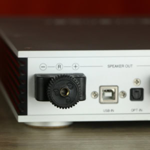Volume can be adjusted using the volume knob on the front panel, the included IR remote control or via the Aurender Conductor app when connected to a compatible Aurender music server.