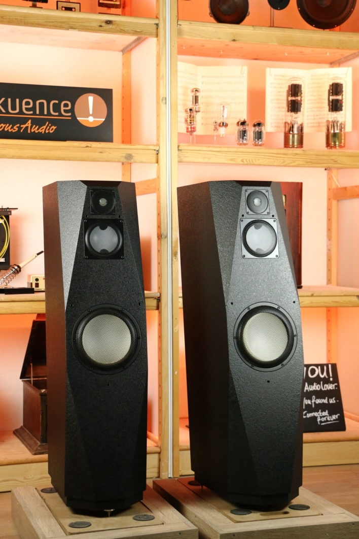 Uber 3-way system, all units of which - even the woofer - is ceramic. Result: extremely easy reproduction of the input. No distortion to speak of, no knocking on your ears, just relaxed and airy listening. The reproduction is clear and detailed, with accurate placement of instruments and voices. The treble is sparkling without sharpness, while the bass remains tight and controlled. The midrange is natural and open, providing a realistic presentation of music.