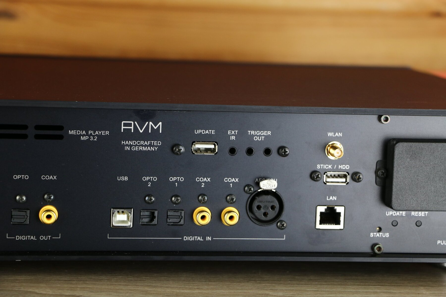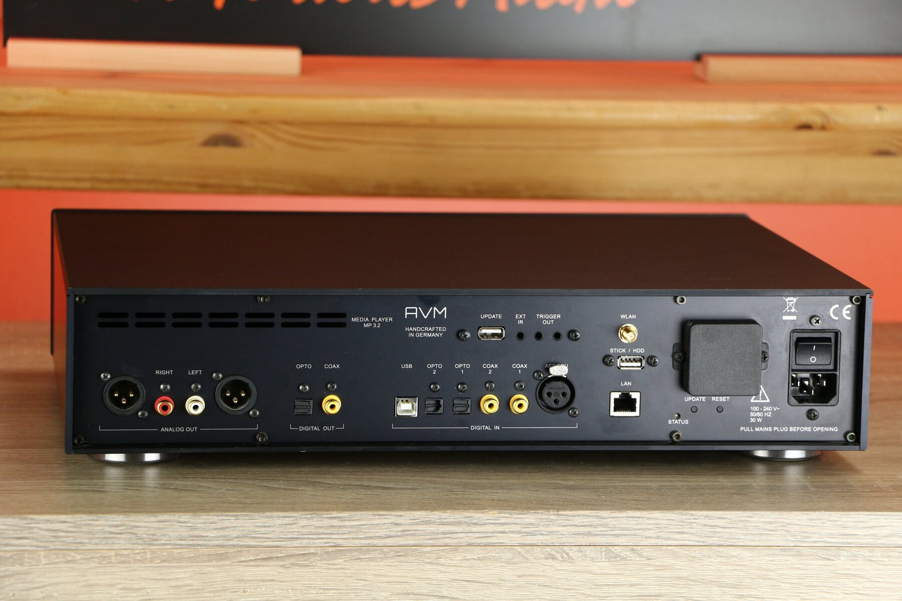 The unit features a TEAC Pure-CD drive with slot-in mechanism, designed specifically for AVM. Various digital inputs are also available, including USB, SPDIF coaxial and optical, as well as network connectivity via LAN and WLAN. The MP 3.2 supports various streaming formats and offers gapless playback for a seamless listening experience.