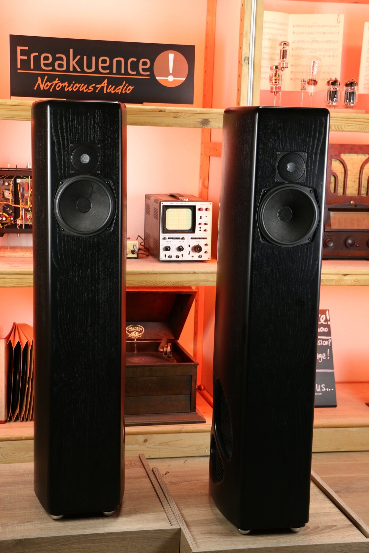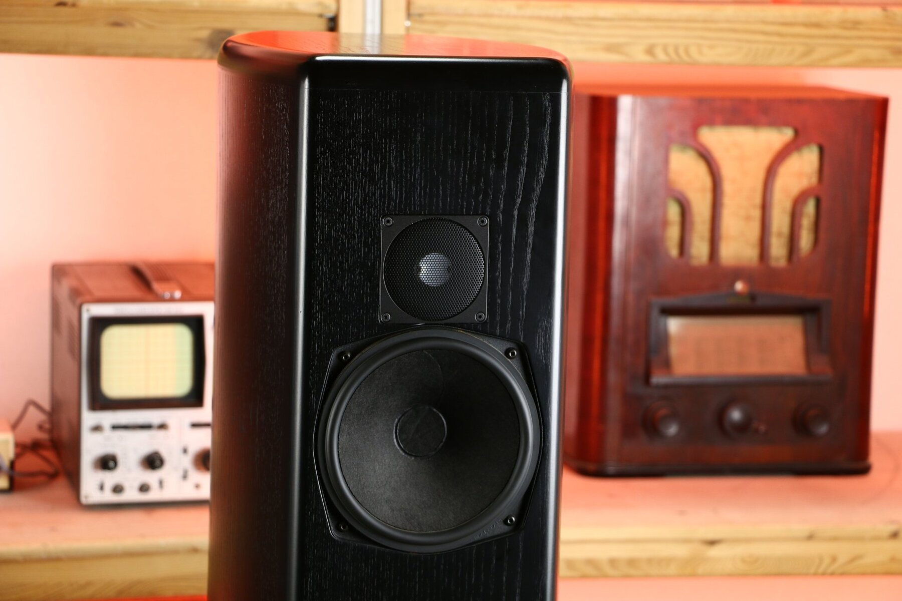 The Brocksieper Arabeske is a loudspeaker that combines craftsmanship and high-quality components. With a 32 cm chitin bass, a 17 cm chitin midrange driver and a Thiel ceramic tweeter, this speaker delivers precise and dynamic sound reproduction. A specially developed supertweeter provides an extended frequency response, which is especially evident with SACD material. The design focuses on realistic time reproduction, reproducing pulses faithfully. The Arabeske is a passive speaker by default, but can be upgraded with a tube-active filter for active amplification. The slim design is maintained by the lateral placement of the subwoofer. With a sensitivity of 91 dB and a frequency range of 29 Hz to 30 kHz, the Arabeske offers an impressive listening experience.