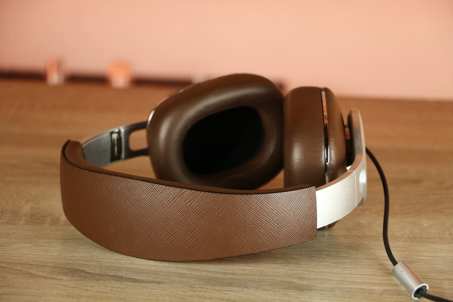 Het ontwerp combineert functionaliteit met esthetiek. De hoofdband en oorkussens zijn bekleed met hoogwaardig Italiaans Saffiano-leer, wat zorgt voor een comfortabele pasvorm, zelfs tijdens langere luistersessies. De stevige aluminium armen dragen bij aan de duurzaamheid van de hoofdtelefoon.