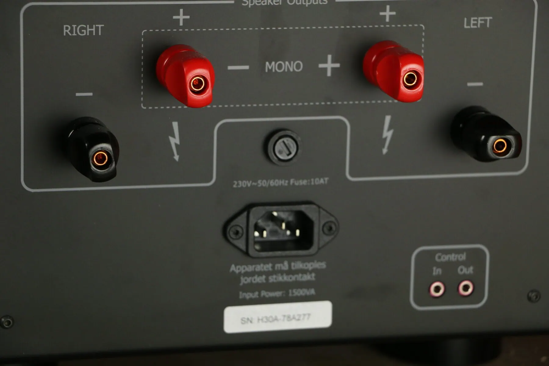 In mono mode, this power amplifier delivers more than 1100 watts at 8 ohms and remains stable at loads up to 1 ohm. The unit can also be used in stereo mode. It features both balanced (XLR) and unbalanced (RCA) inputs, as well as a 12V trigger input. High-quality, gold-plated speaker terminals are provided for optimal connectivity. The power supply consists of two separate 1000 VA transformers and a 270,000 μF capacitor bank, ensuring adequate power and minimal distortion. In the output stage, 56 15-A and 200-W bipolar transistors are used. The input stage uses carefully matched FET transistors to eliminate higher harmonic distortion. In addition, SoundEngine technology is used to correct distortion in real time. The frequency range is wide and the signal-to-noise ratio exceeds 100 dB. The attenuation factor is higher than 500, contributing to a controlled and natural sound’.