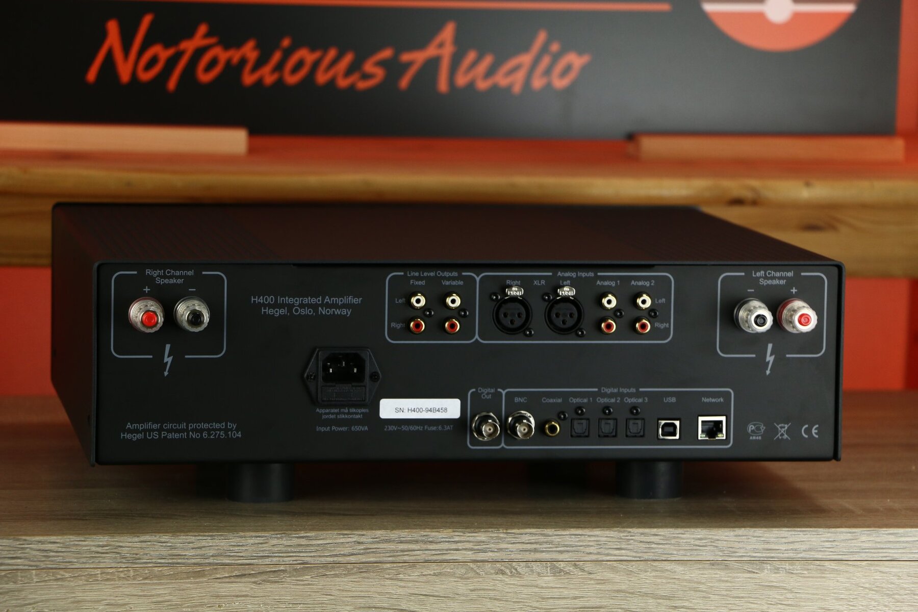 The Hegel H400 was designed under the direction of Bent Holter, founder and chief engineer of Hegel Music Systems. The integrated amplifier combines DualAmp technology with DualPower, for minimum distortion and maximum dynamics. It incorporates heavily specified power supplies, custom-made toroidal transformers and Hegel's own SoundEngine technology. The cabinet is made of brushed aluminum, CNC-machined for extra rigidity and low resonance. The internal wiring is carefully chosen for optimal signal transparency and low noise.