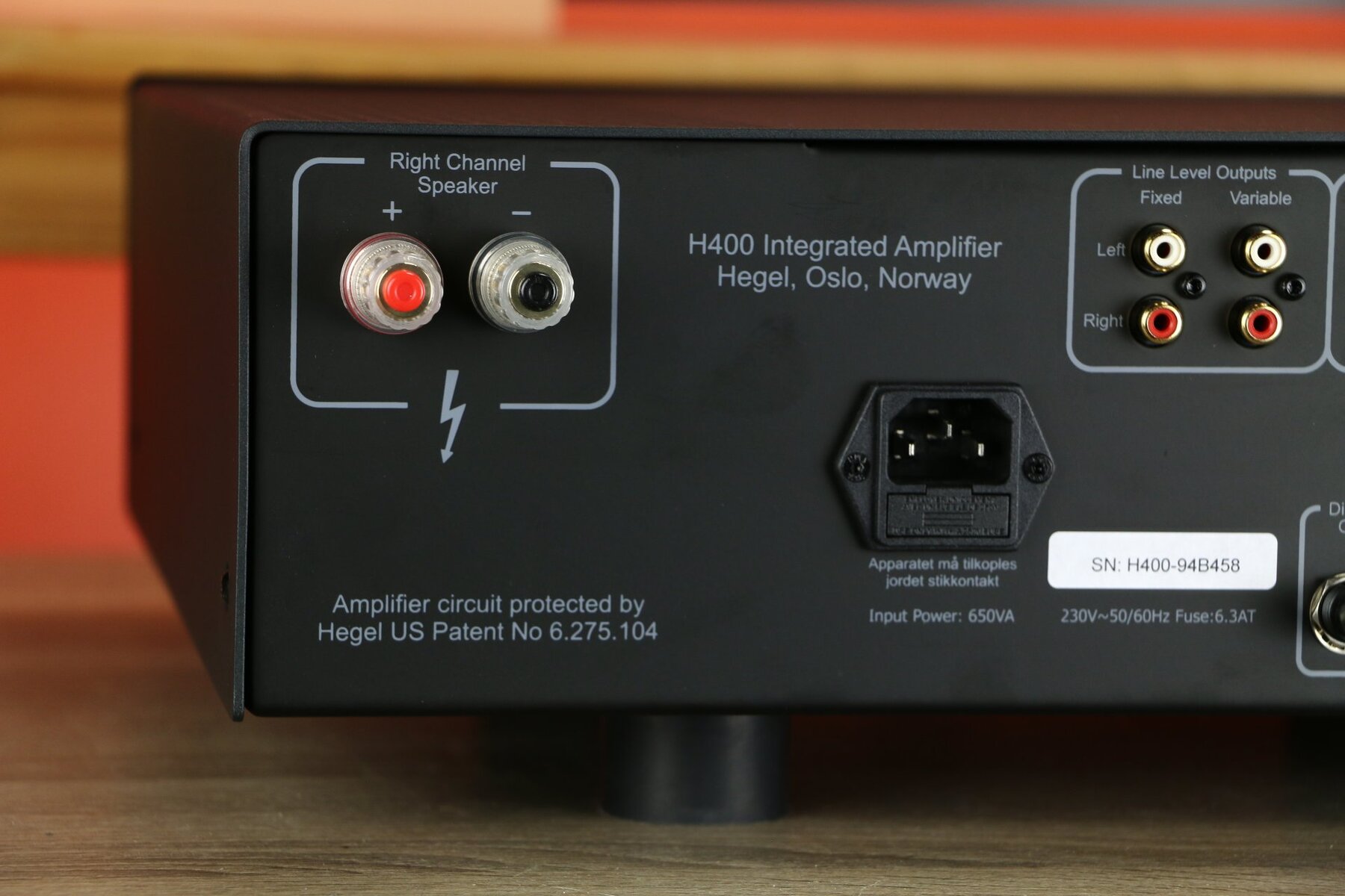The H400 delivers 2 x 250 W at 8 Ω and is stable up to a load of 2 Ω.