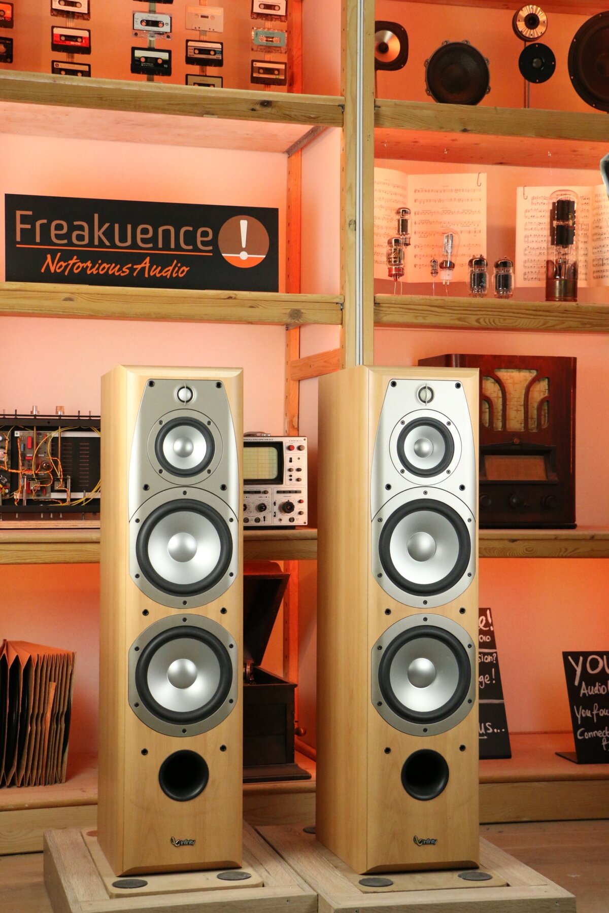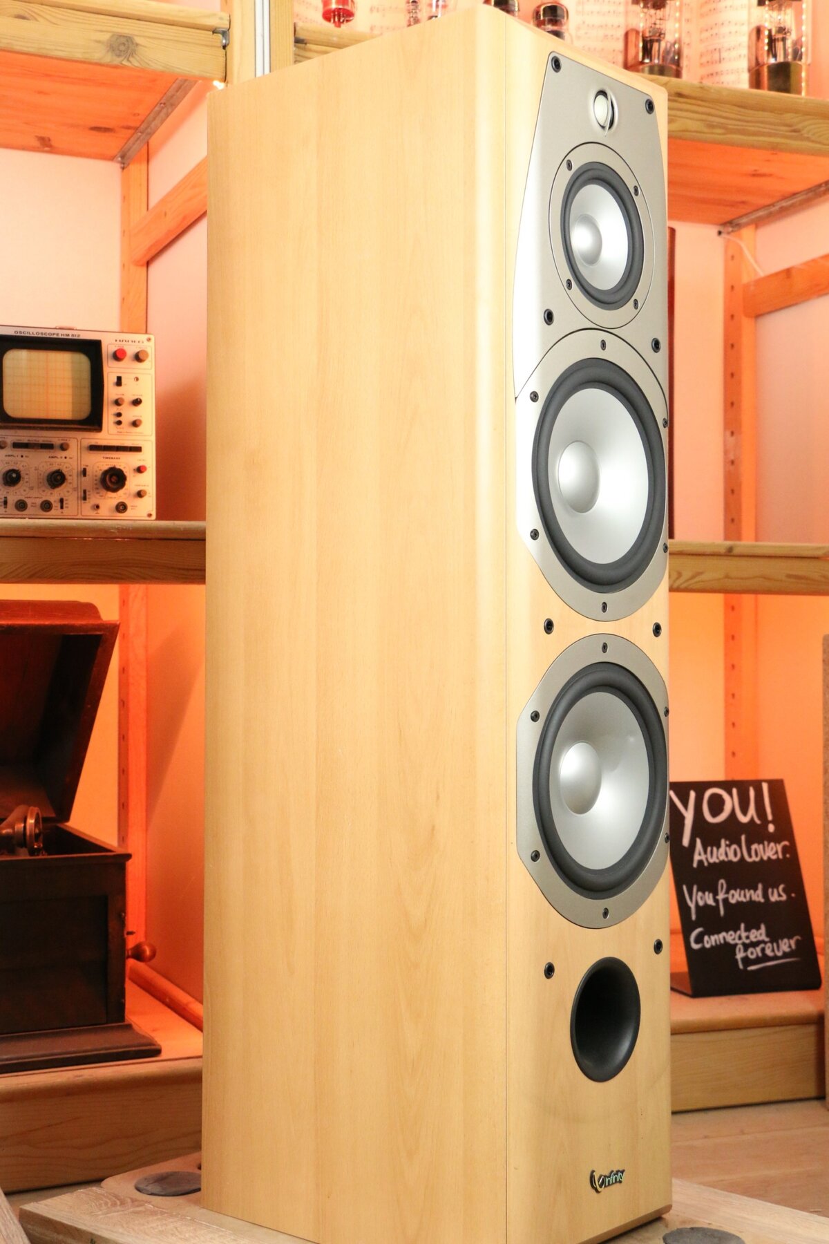 The Infinity Alpha 50 is a 3-way speaker with two 200 mm woofers, a 130 mm midrange driver and a 25 mm tweeter.