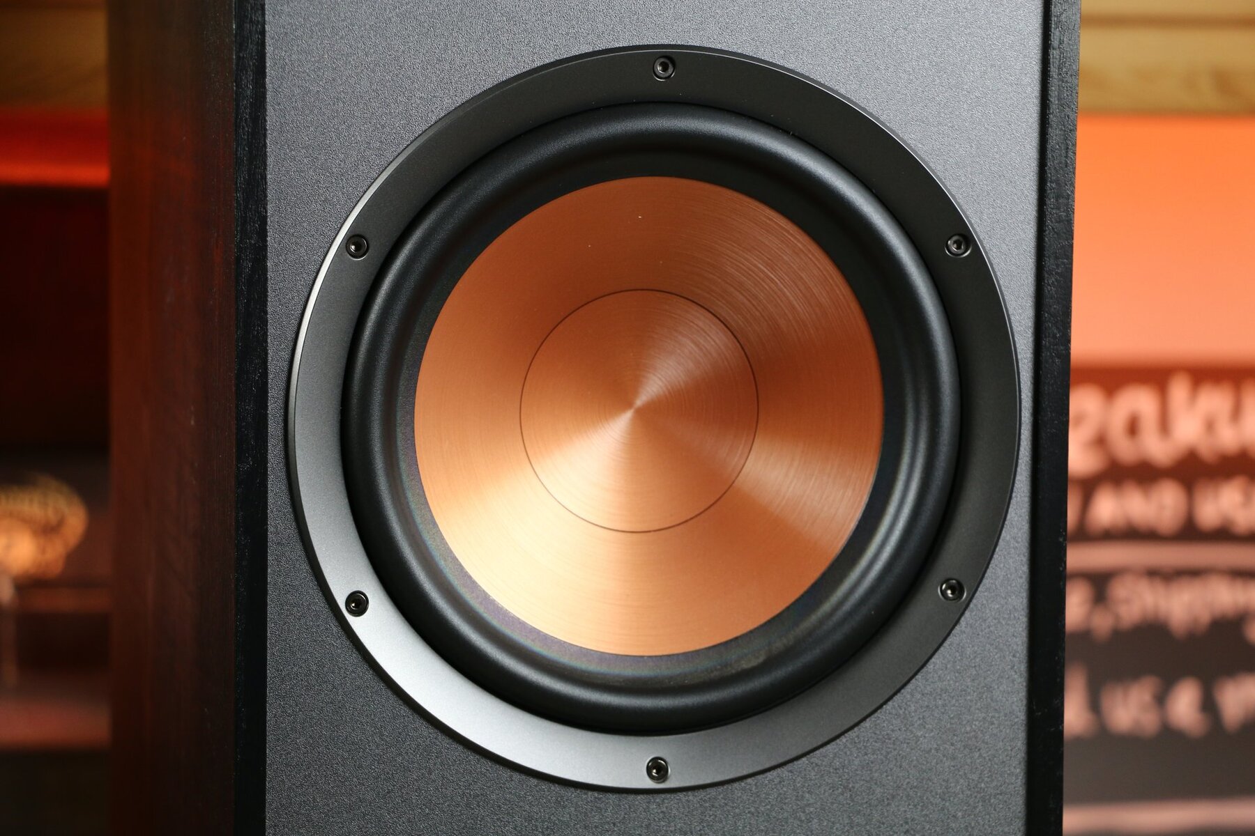 The R-820F is equipped with two 8-inch spun-copper IMG woofers.