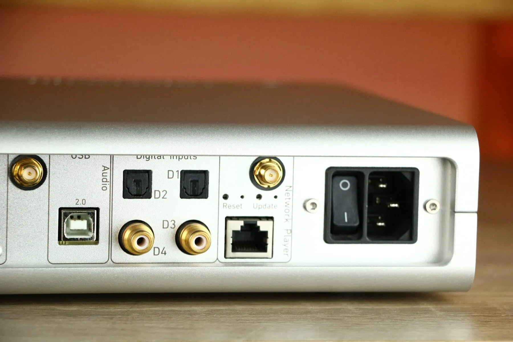 De Musicbook 20DSD beschikt over vier digitale ingangen (twee optische en twee coaxiale) en twee analoge ingangen voor het aansluiten van externe bronnen zoals tv’s, tuners of platenspelervoortversterkers.