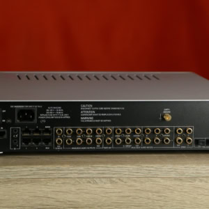 This unit offers advanced technical capabilities that include balanced and unbalanced outputs. It features a phono input suitable for both MM and MC cartridges, and has a switching power supply. Its RS232 and Ethernet capabilities allow it to be integrated into complex systems. It supports both analog and digital sources and ensures minimal distortion thanks to the precise placement of circuitry. The internal phono card can also be adapted for different cartridges, providing flexibility in vinyl playback. The compact form factor contributes to a practical setup with no compromise in performance.