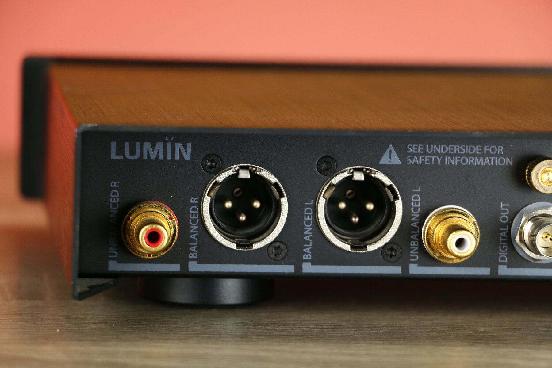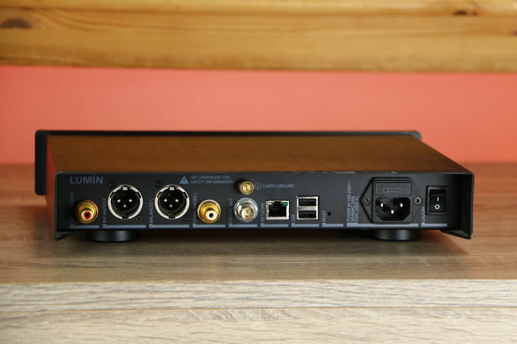 The LUMIN D2 features an Ethernet RJ45 port for network connectivity, USB inputs for storage devices and both XLR and RCA outputs for analog audio.