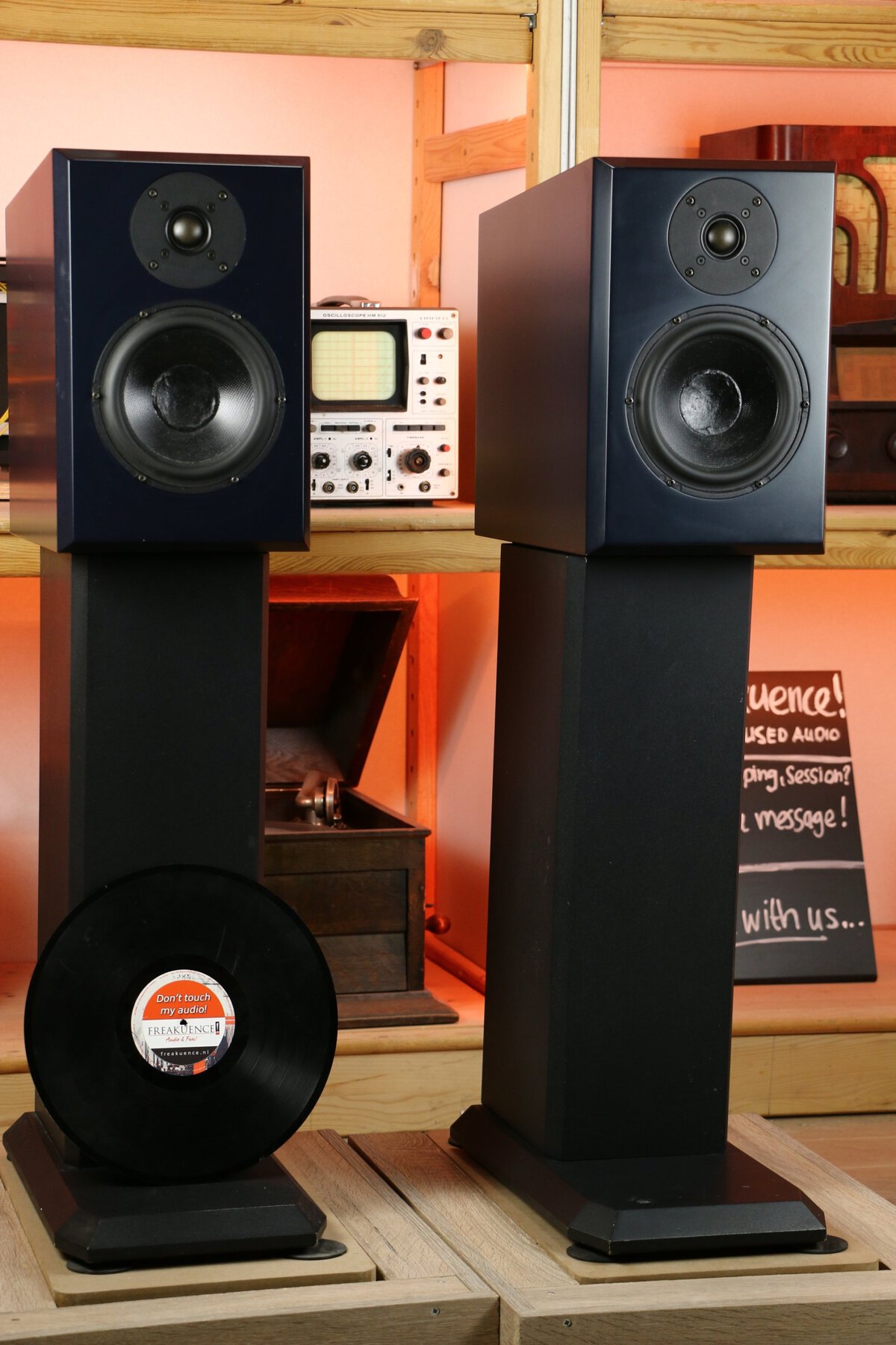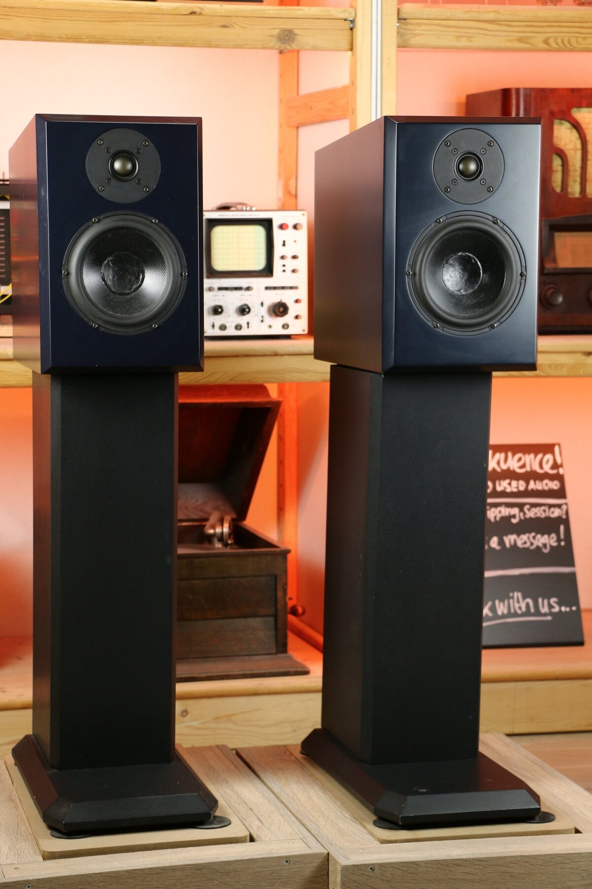Terrible looking monitors on the original stands. With monitors you have to be sucked into the music, and yes, these cabinets do that very nicely. Extremely precise and a real pleasure to listen to. Greatness! 🙂