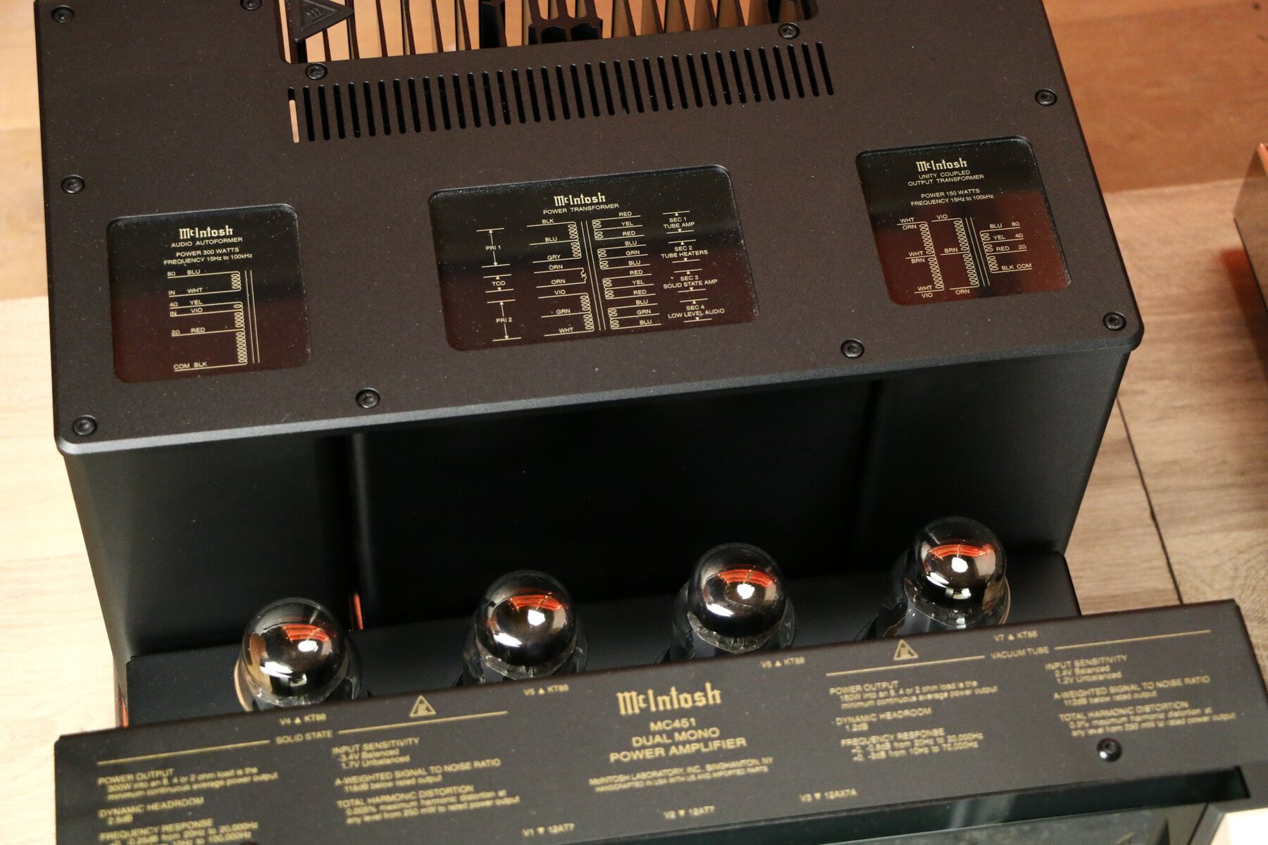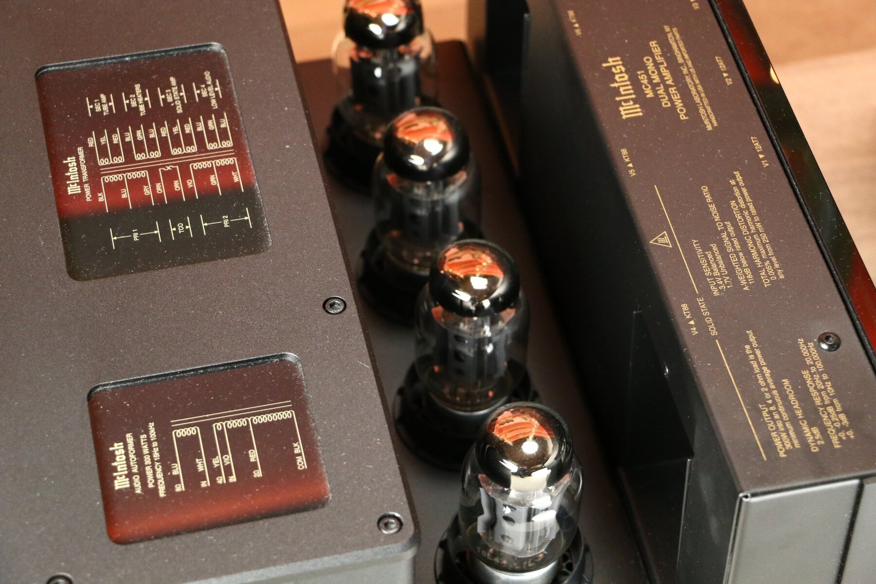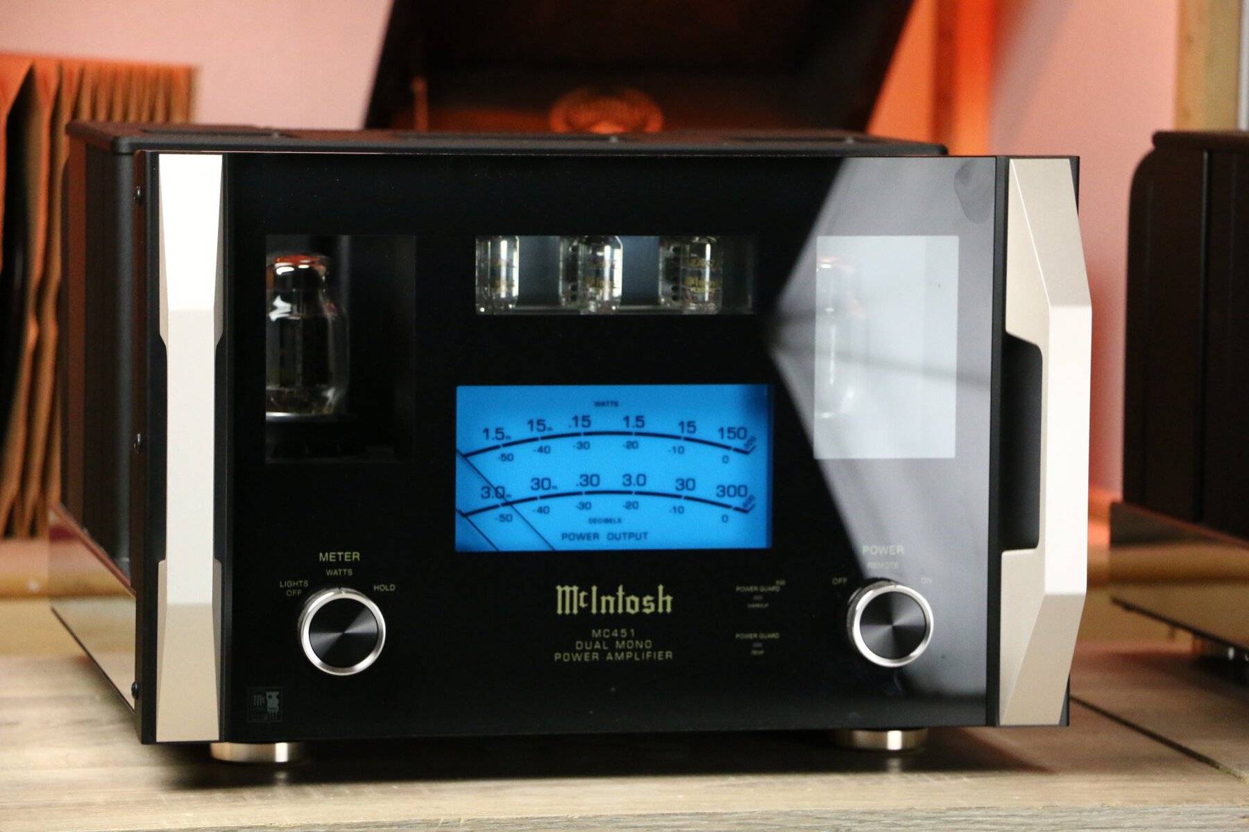 The McIntosh MC451 features the DualView™ Power Output Meter, which displays real-time output power from both the tube and solid-state sections. In addition, the amplifier features various McIntosh technologies such as Power Guard®, Sentry Monitor™ and Solid Cinch™ speaker connections, which contribute to reliable and high-quality audio reproduction.