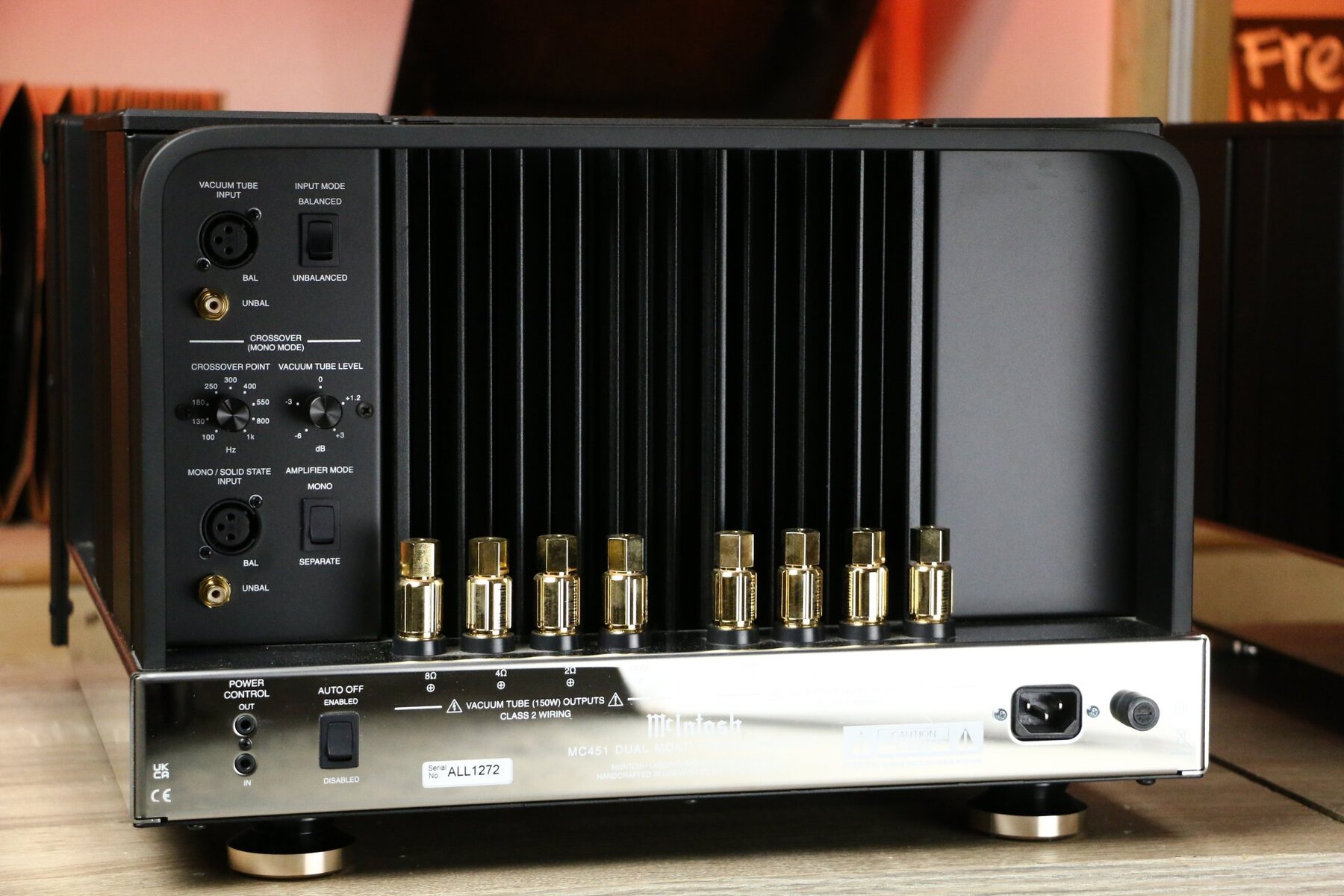 With an output of 150 watts for the tube amplifier and 300 watts for the solid-state amplifier, the McIntosh MC451 delivers enough power to drive virtually any speaker. The integrated crossover allows precise tuning of the frequency distribution between the two amplifier sections, resulting in dynamic and detailed sound reproduction.