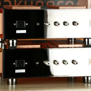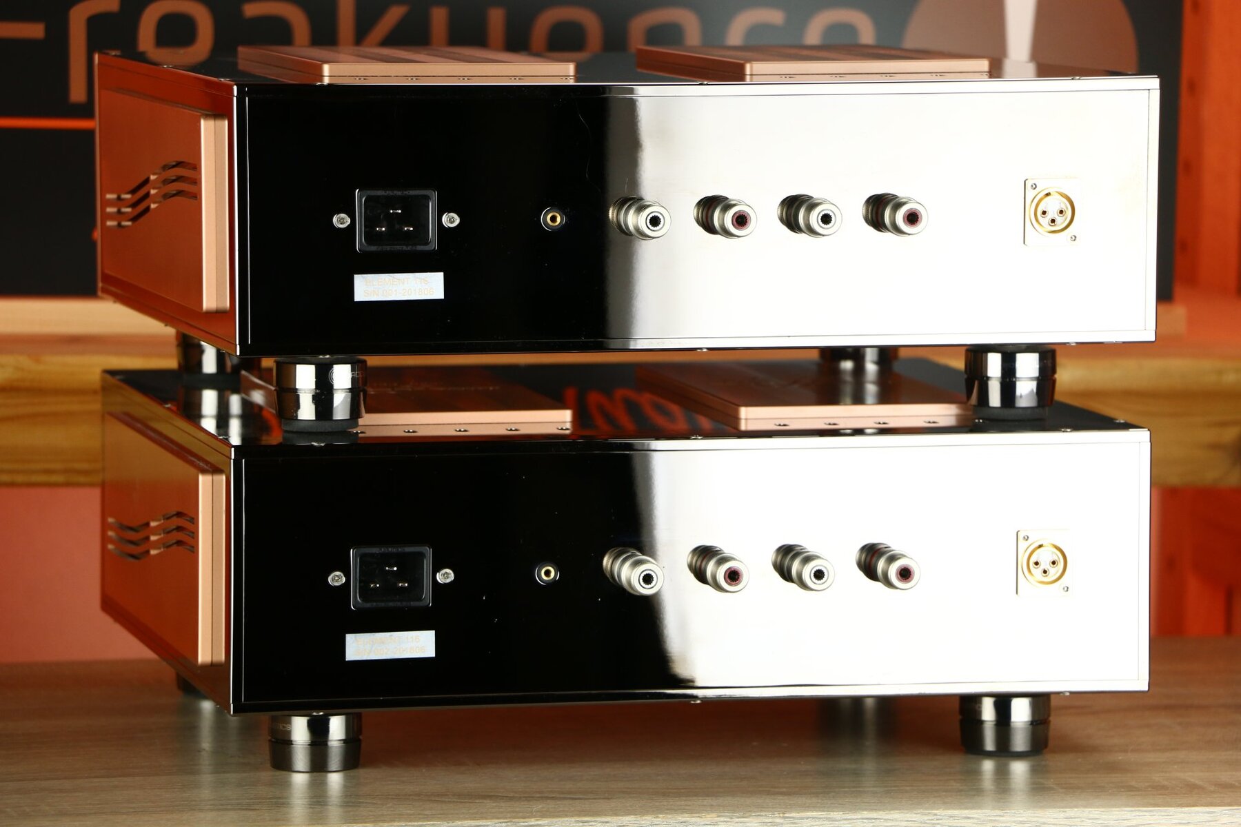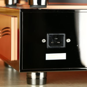 The amplifier features a 20A IEC AC inlet with rhodium-plated Furutech connector.