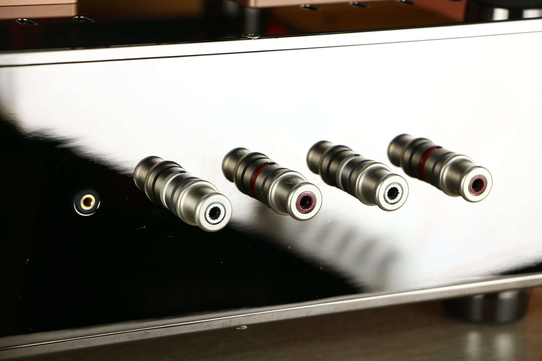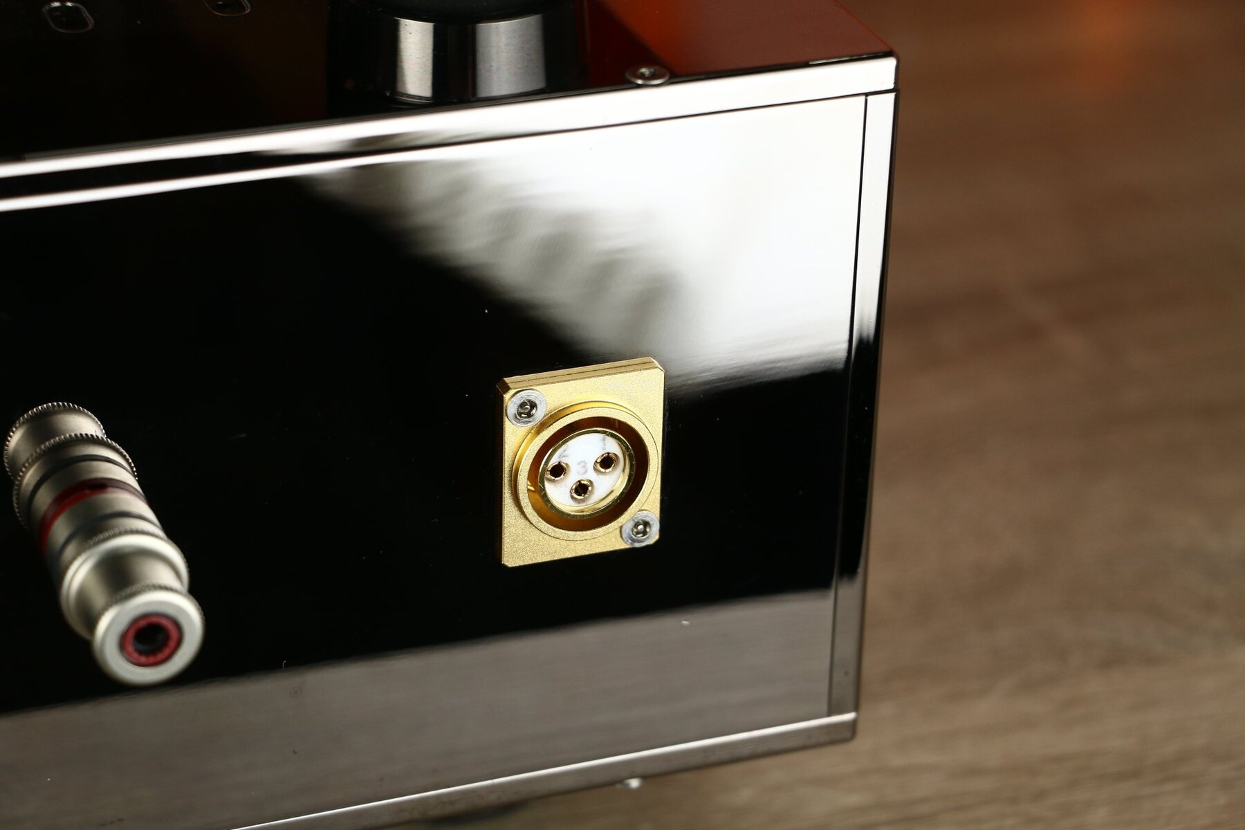 The amplifier features a balanced XLR input and dual WBT 0710 CuMc speaker terminals for bi-wiring.