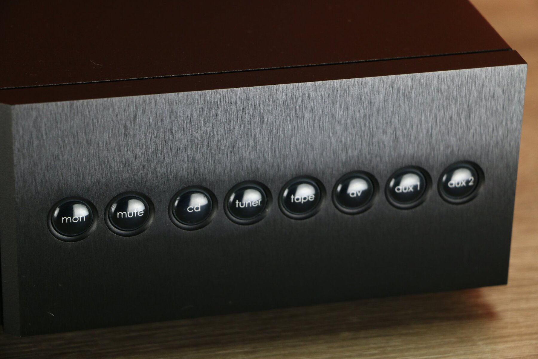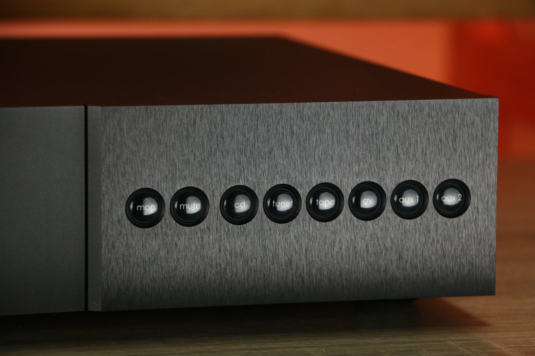 The NAC 202 can be controlled from the front panel with a volume control and a matrix of eight buttons, or with the included NARCOM-4 remote control.