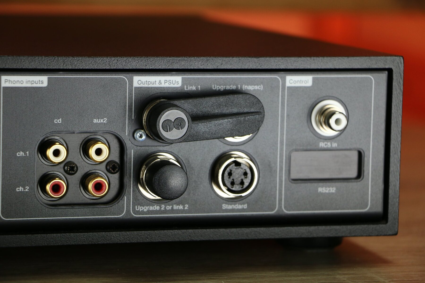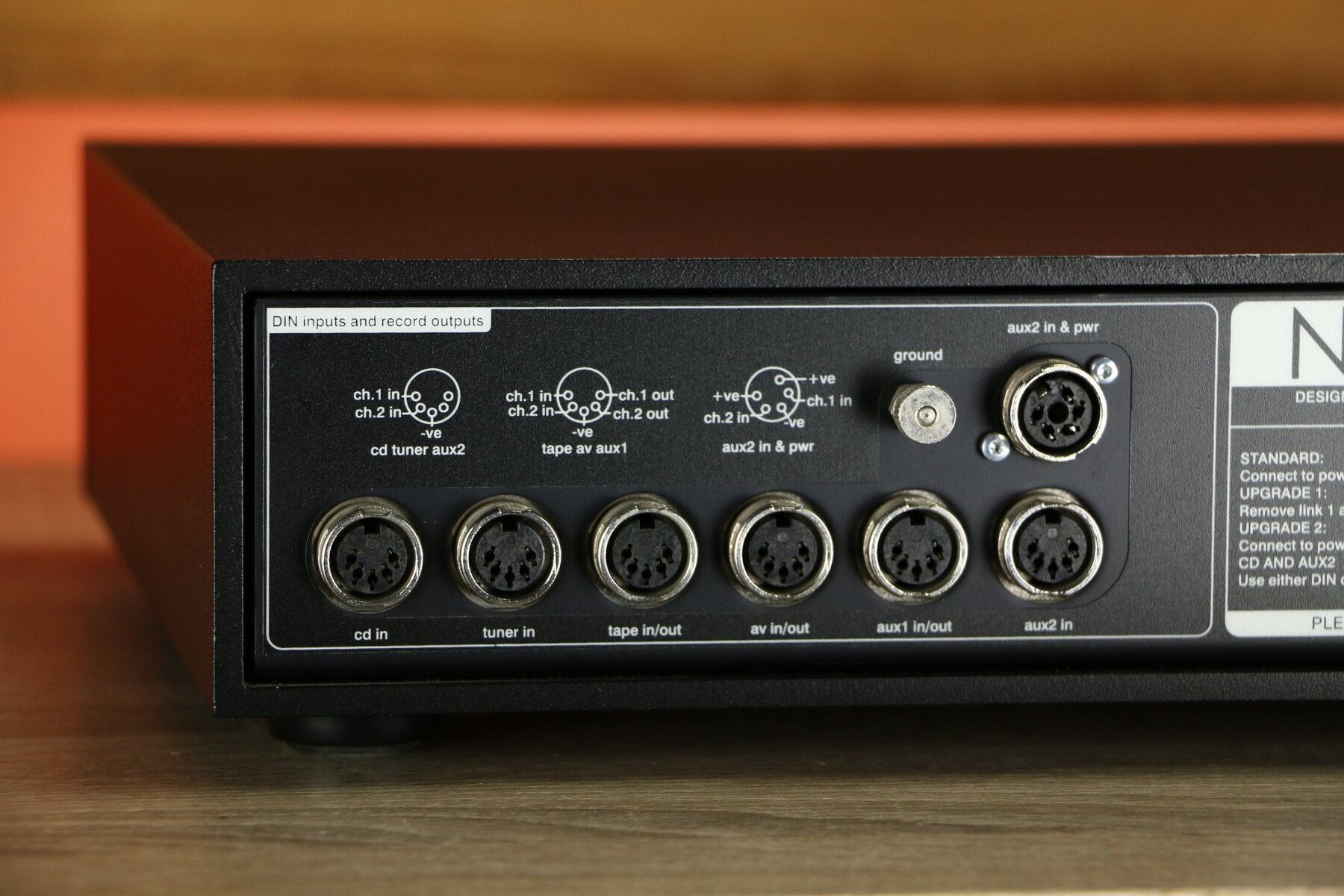 The NAC 202 features four DIN inputs and two RCA inputs, as well as an AV input configurable for unity gain.