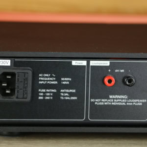 The amplifier supports mains voltages of 100V, 115V and 230V at 50 or 60 Hz.