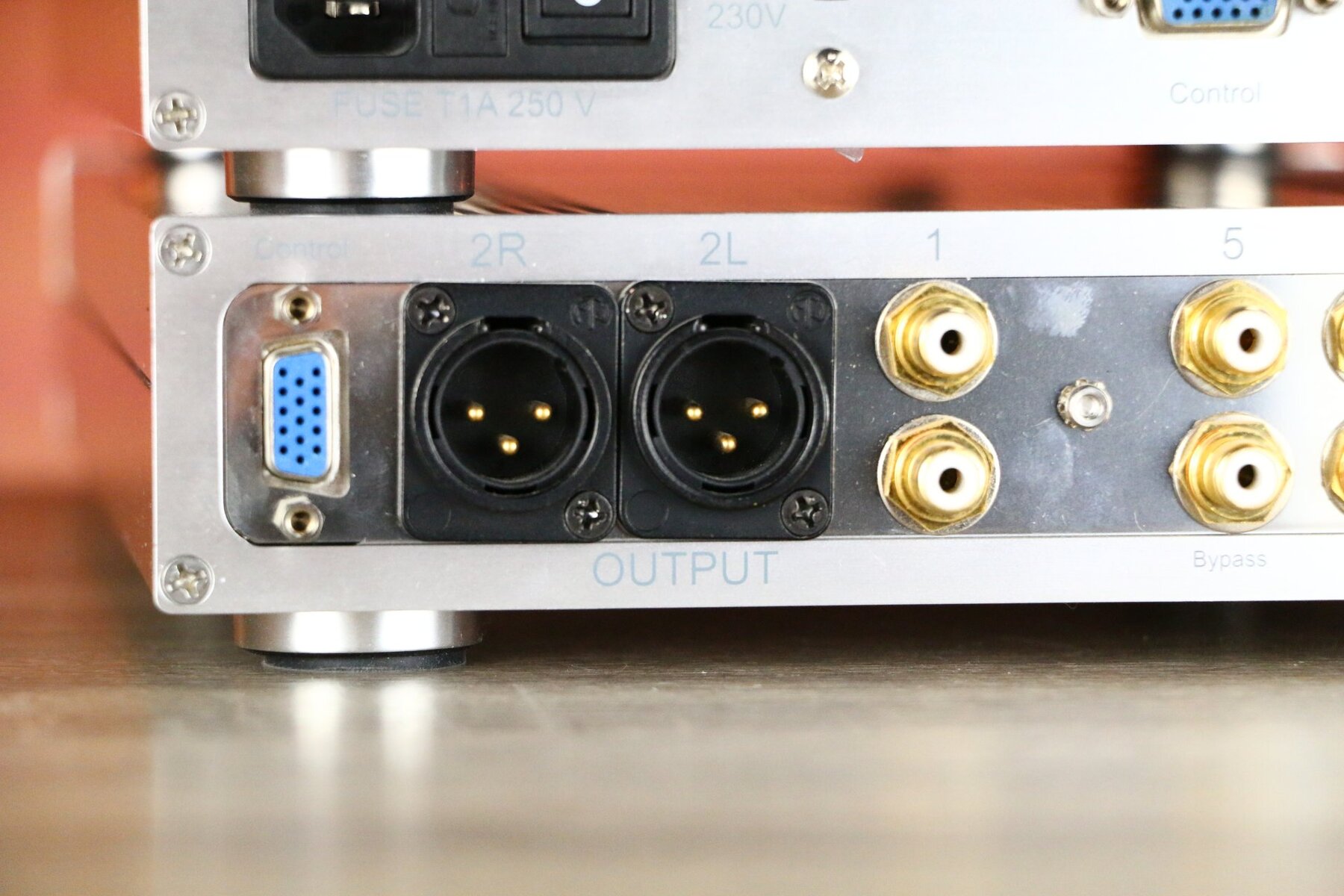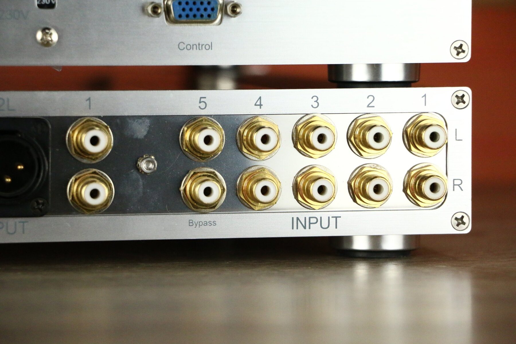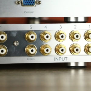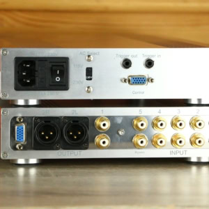 The P-9 features five RCA inputs, including a Home Theater bypass, and both RCA and XLR outputs. Note that the XLR outputs are not balanced.