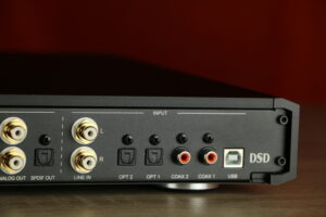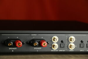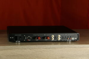 Dit geïntegreerde digitale versterkersysteem levert 200 watt per kanaal en ondersteunt hoge-resolutie audioformaten, waaronder PCM tot 384 kHz en DSD tot 11,2 MHz. Het beschikt over vijf digitale ingangen en één analoge stereo-ingang, wat flexibiliteit biedt voor verschillende bronnen. Het volume wordt geregeld via een geavanceerd systeem dat gebruikmaakt van een thin-film weerstandsnetwerk, waardoor nauwkeurige aanpassingen in stappen van 0,5 dB mogelijk zijn. De versterker schakelt met een frequentie van 600 kHz, wat bijdraagt aan een efficiënte en nauwkeurige signaalverwerking. Het frequentiebereik strekt zich uit tot 80 kHz, wat bijdraagt aan een gedetailleerde weergave van hoge tonen. Het systeem is ontworpen met een focus op een korte signaalweg om ruis en vervorming te minimaliseren, wat resulteert in een heldere en natuurlijke geluidsweergave.