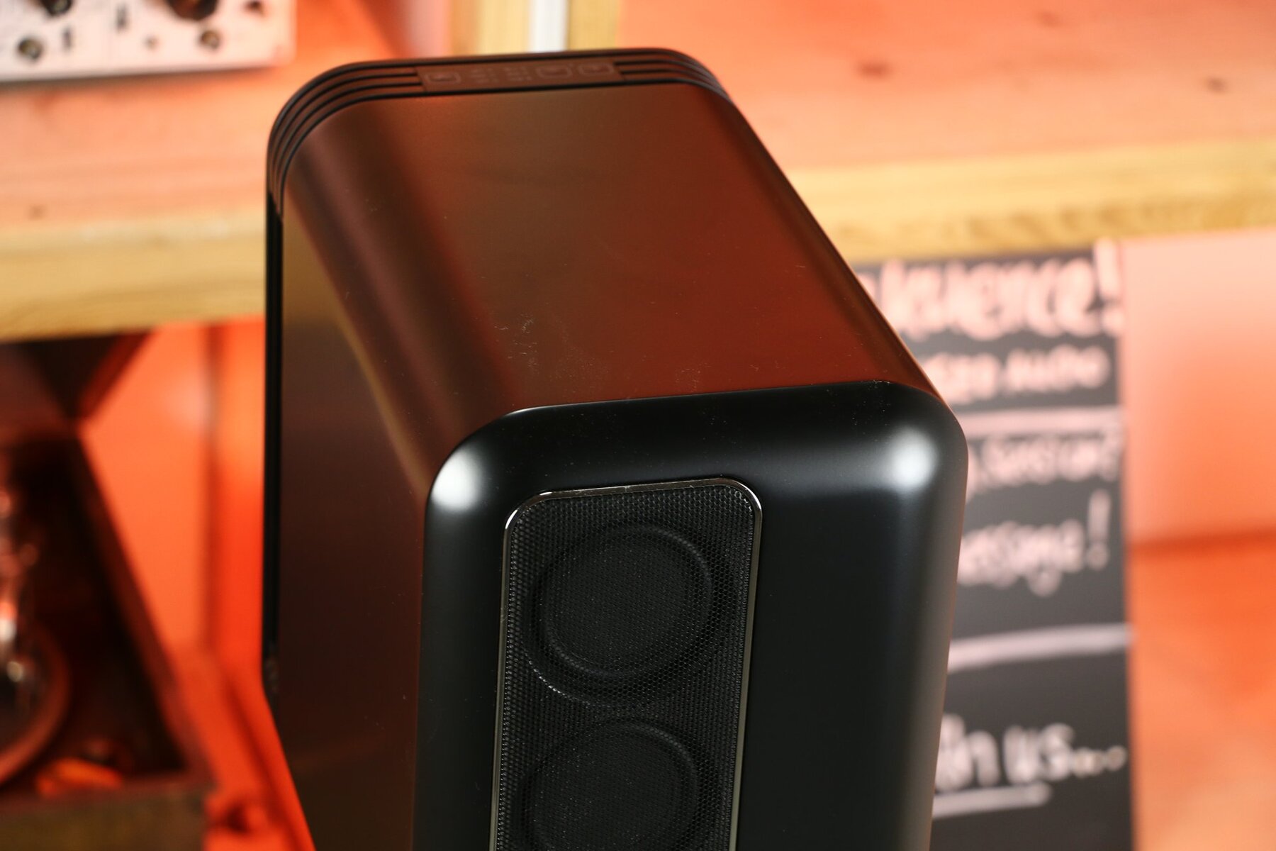 Being nice and active, who doesn't want that? Not to worry, an active speaker fortunately stays quietly in place, but inside it warms itself up nicely. It contains amplifiers, which are perfectly matched to the units. The internal dac is there for digital signal processing. So keep short lines of communication! Just shoot some music files into it, and Pete is done.