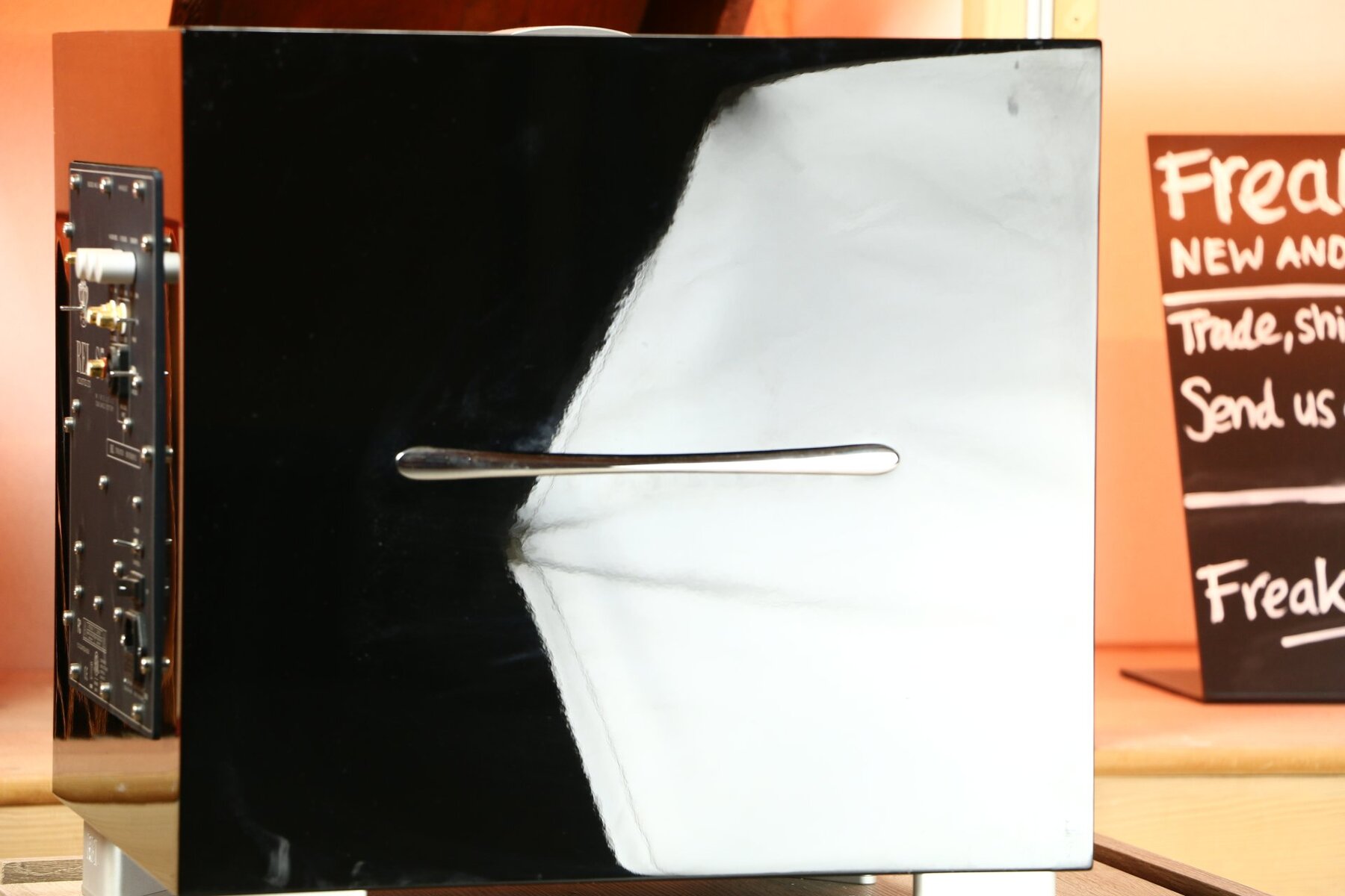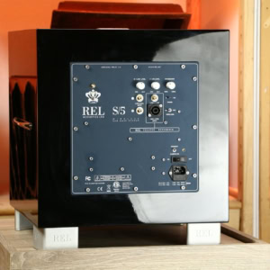The REL S5 measures 444.5 mm in width, 455.5 mm in height and 507 mm in depth, including feet and rear panel controls.