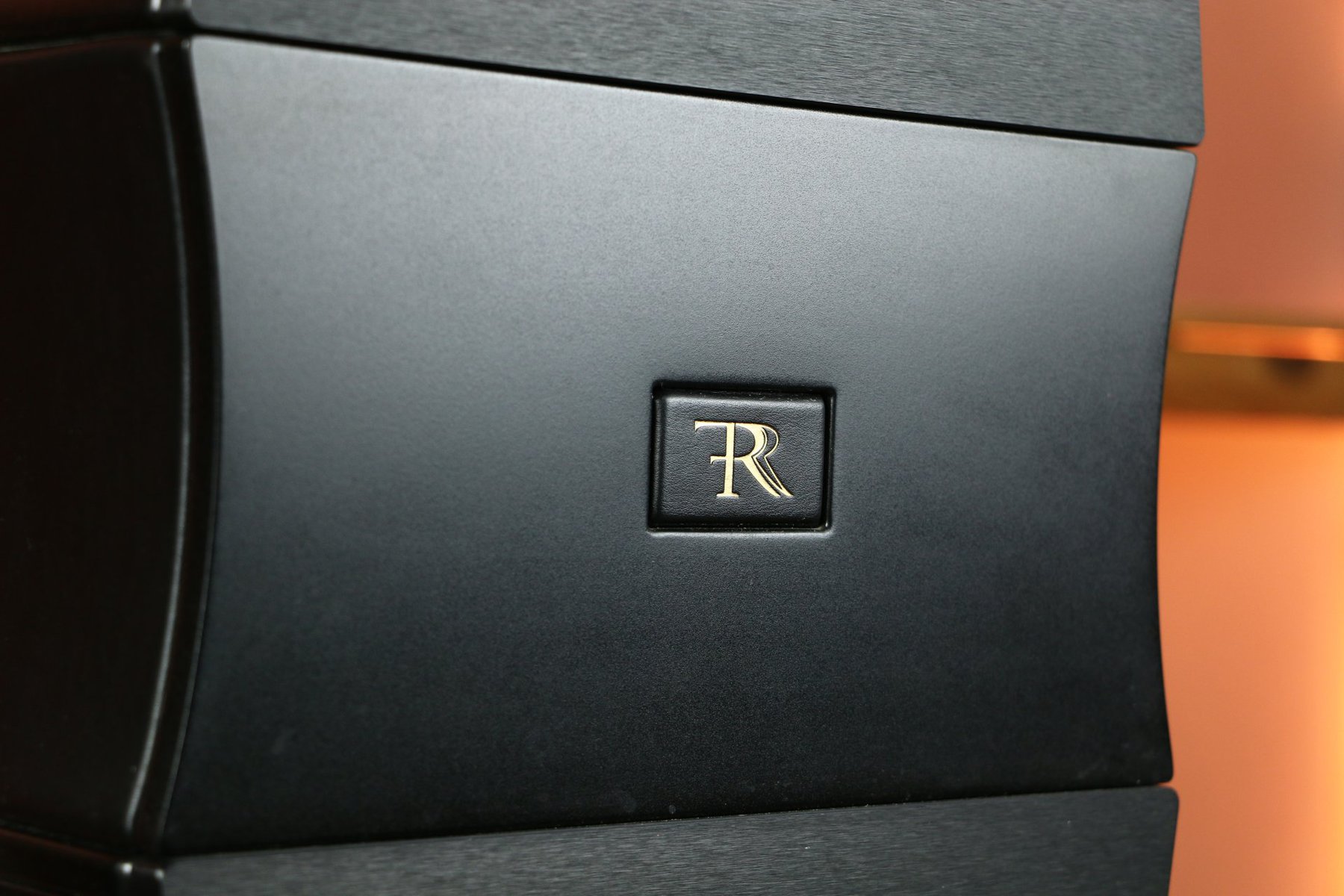 Standard finishes include walnut and high-gloss black; optional finishes include selected leathers and various paint finishes.