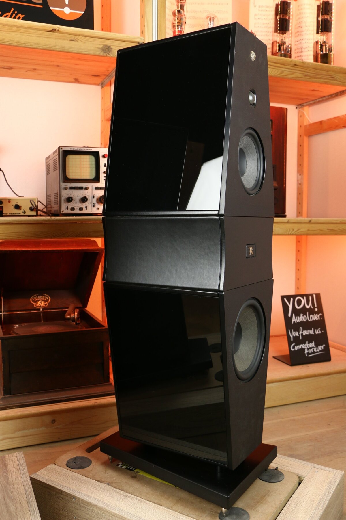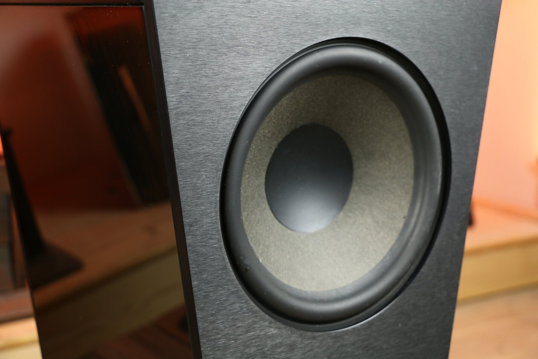 The speaker is equipped with a ribbon-diaphragm ultrasonic generator, a 1-inch silk dome neodymium tweeter, a 6.5-inch Nomex-diaphragm woofer and an 8-inch Nomex-diaphragm woofer.