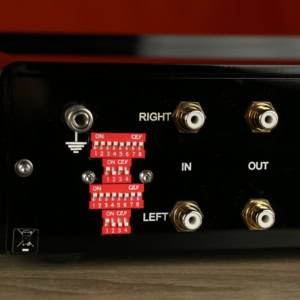 Use the rear panel DIP switches to select one of nine available load values per channel: 112, 126, 144, 168, 200, 250, 333, 500 or 1000 ohms.