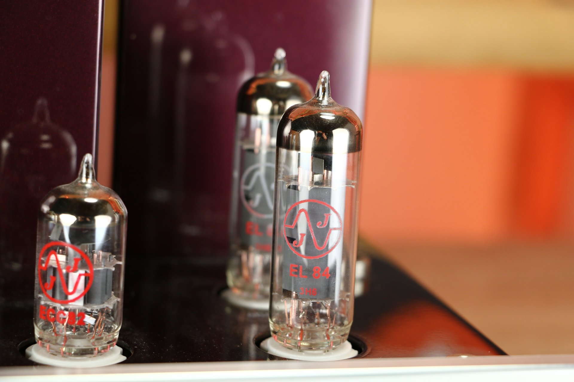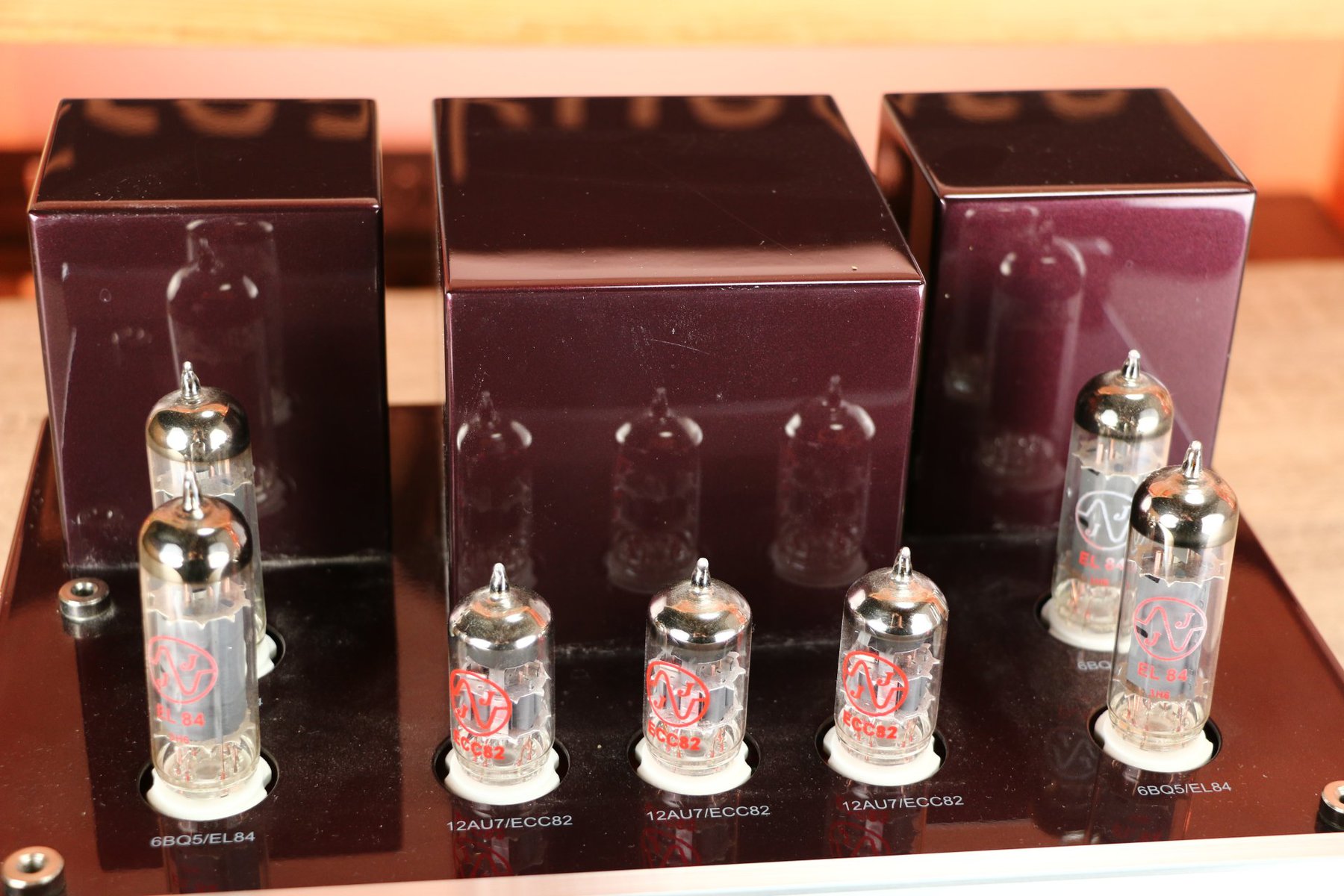 The amplifier uses four EL84 (6BQ5) tubes and three 12AU7 tubes.