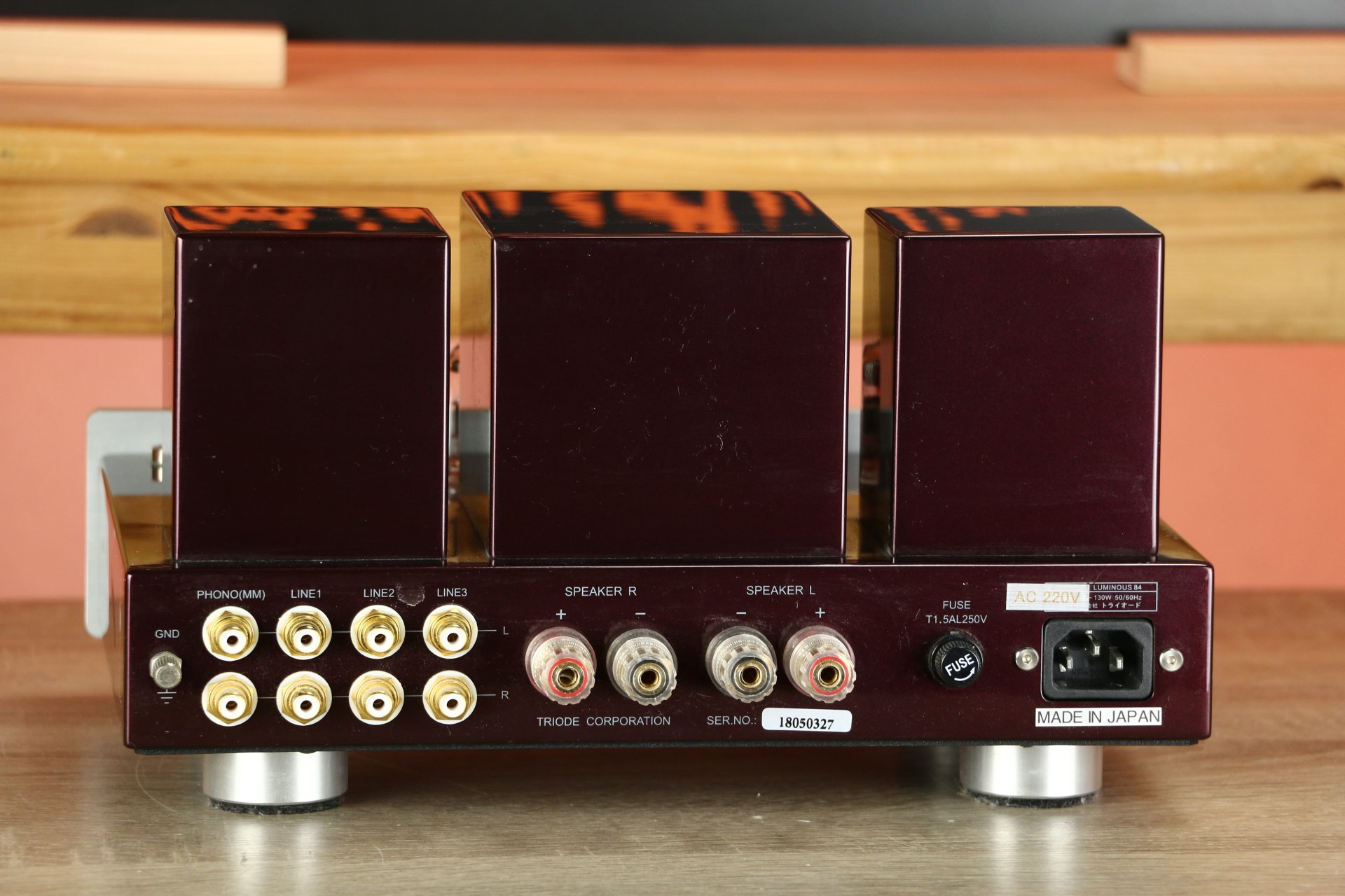 The TRIODE Luminous 84 is a hand-built integrated tube amplifier from Japan designed by Junichiro Yamazaki. The amplifier uses EL84 power tubes and excels in musicality and natural sound. Only high-quality components such as Tamura transformers, Kiwame resistors and Vishay capacitors are used. The internal wiring is done entirely by hand in point-to-point style for a short signal path and maximum purity. The enclosure is brushed aluminum and wood, with a focus on timeless Japanese design and solidity.