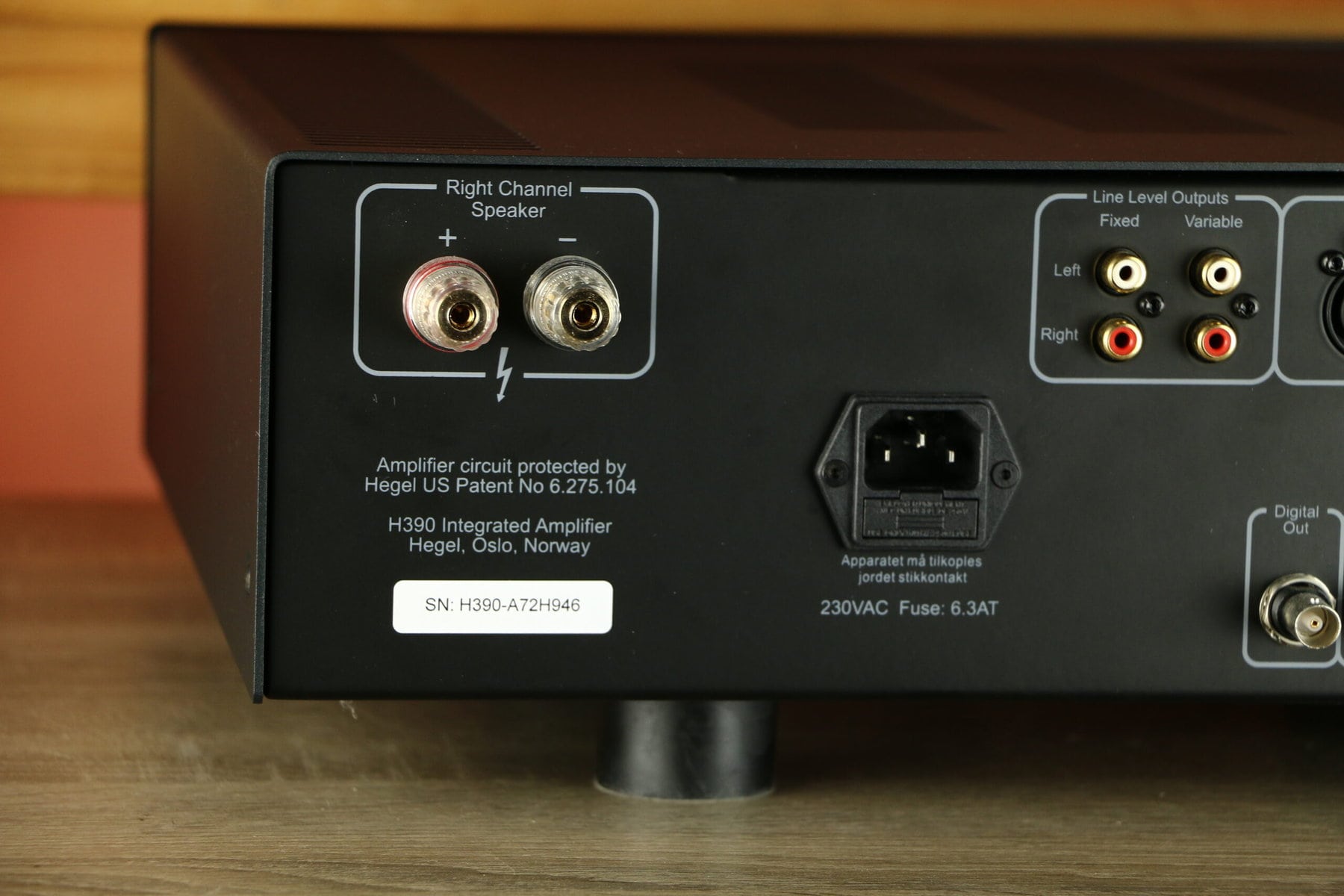 Hegel épais ! Avec le précieux dac interne. Une puissance sans précédent. Il maintient les unités basses fermement en place et, à partir de là, comprime les plus petites vagues de basses fréquences dans la pièce avec précision. La scène qu’il met en place est grande, en dehors des enceintes, et tout est très bien positionné.