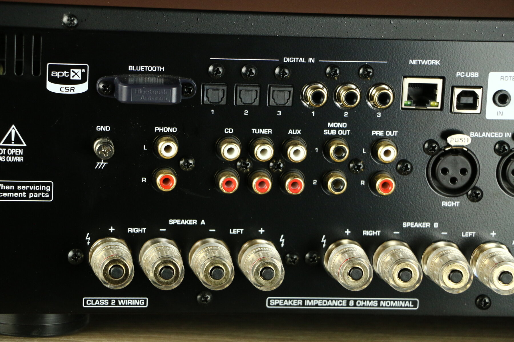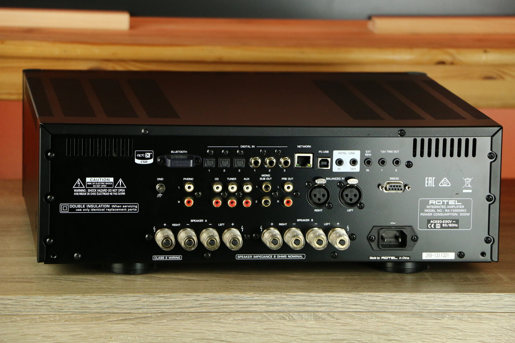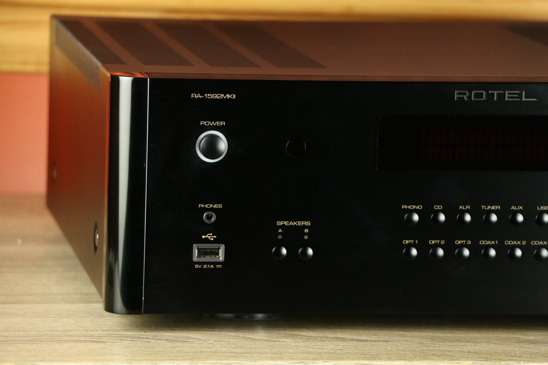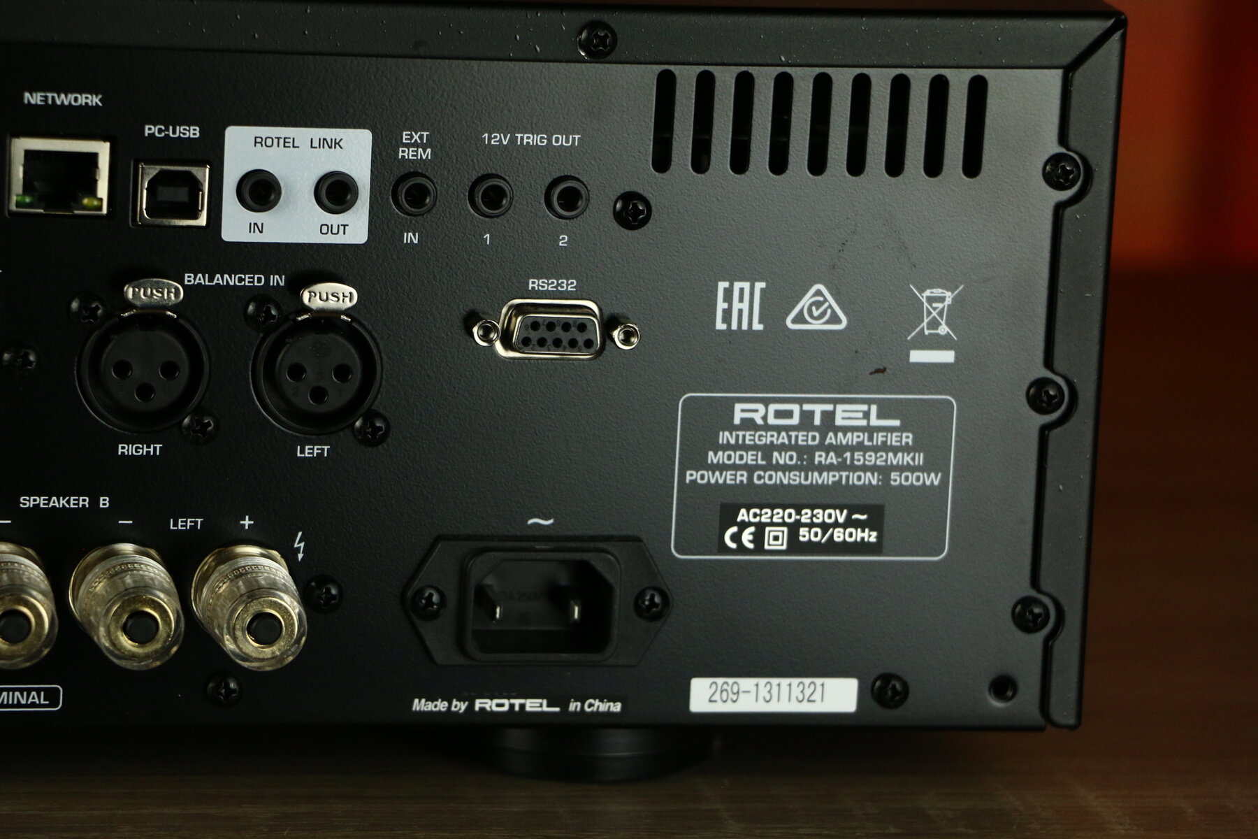 Le RA-1592 MKII dispose de plusieurs connexions, dont trois entrées numériques optiques et trois entrées numériques coaxiales, un port USB pour PC, un port USB frontal pour iPod, une entrée phono pour cartouches MM, des entrées symétriques XLR et plusieurs entrées analogiques RCA.