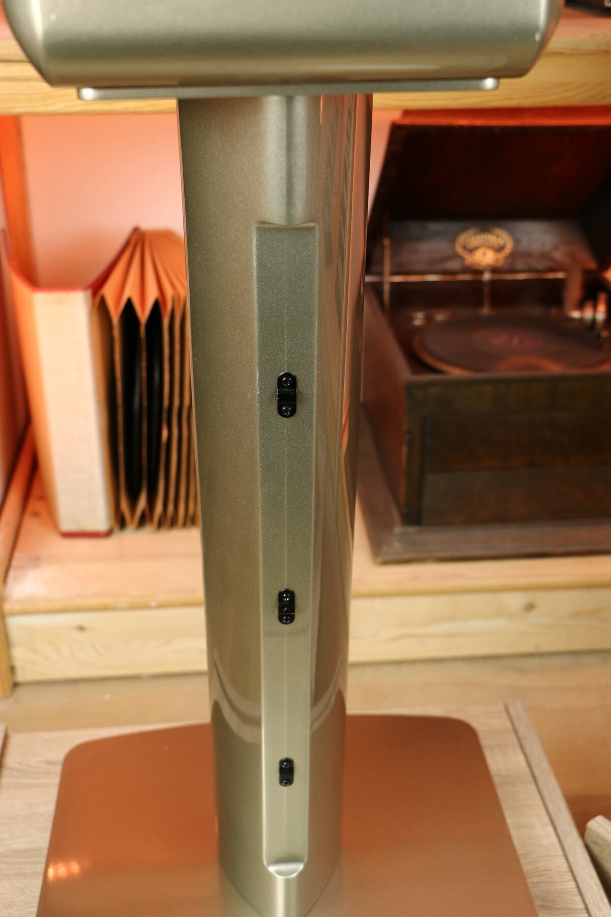 La TAD ME1-S est une enceinte compacte de bibliothèque connue pour sa reproduction sonore précise et son son naturel. Grâce au haut-parleur CST (Coherent Source Transducer), les fréquences moyennes et hautes sont combinées de manière transparente, ce qui permet d’obtenir une scène sonore stable et une reproduction sonore réaliste. Le woofer de 16 cm, doté d’une membrane en composite aramide multicouche, assure une reproduction riche et fluide des médiums et des graves. L’enceinte est équipée d’un port ADS (Aero-Dynamic Slot) bidirectionnel, qui produit des sons graves naturels et profonds malgré sa taille compacte. Le TAD ME1-S est disponible en finition argent titane, ce qui lui confère un aspect sophistiqué.