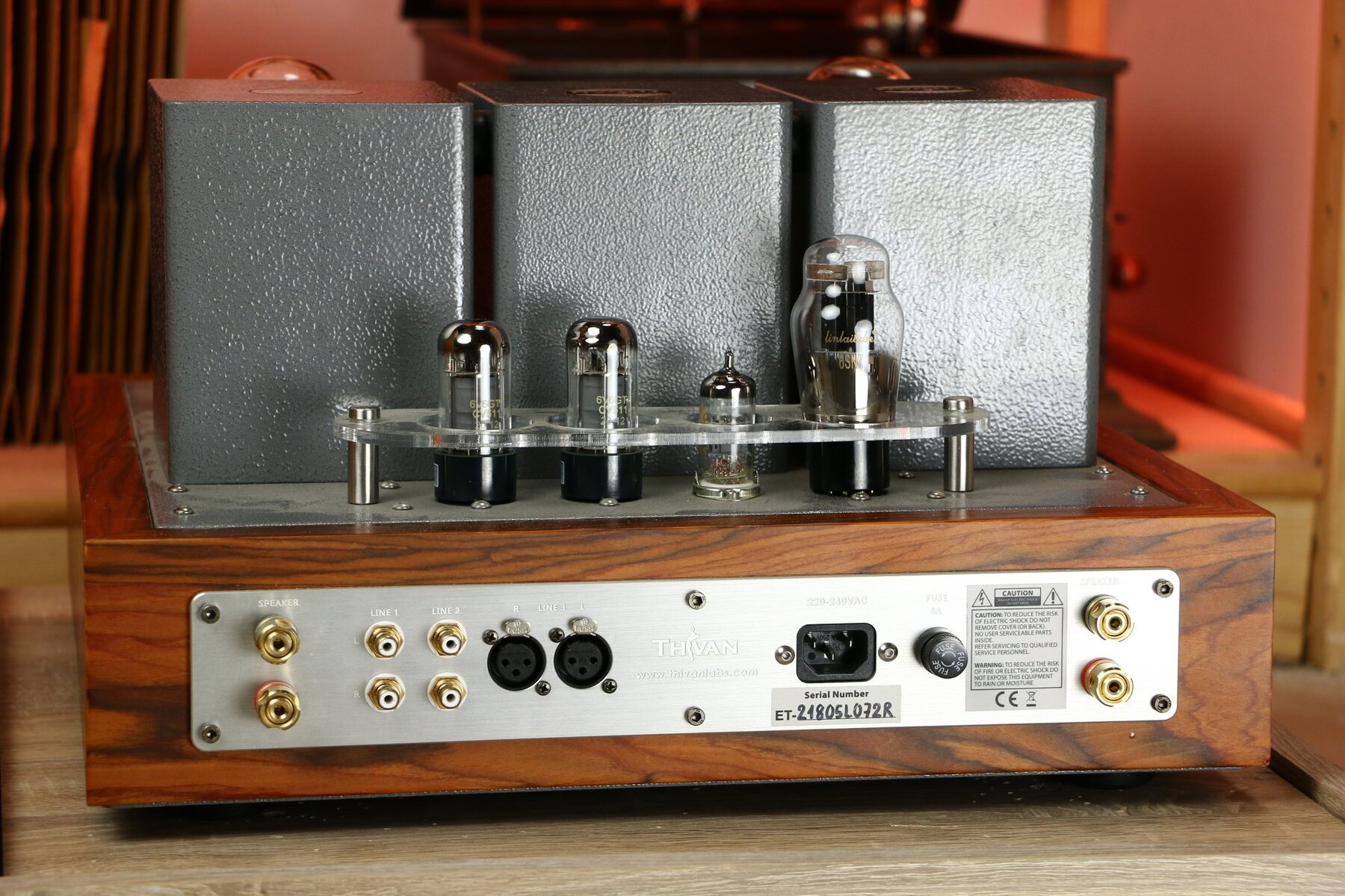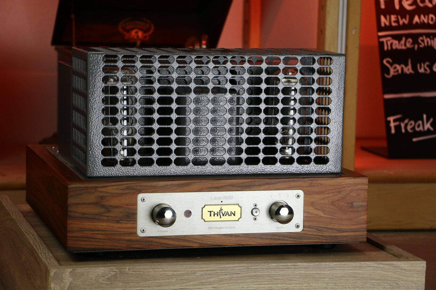 Le Lion 805a de Thivanlabs est conçu selon une topologie de triode mono-alternance (SET) de classe A avec le légendaire tube de puissance 805. L'ingénieur principal, M. Thivan, est lui-même au cœur de la conception. L'amplificateur est construit à la main avec des transformateurs japonais de haute qualité, un câblage interne en cuivre pur et des composants sélectionnés tels que des condensateurs allemands. Le coffret en bois est fabriqué dans notre propre atelier et fini avec de l'huile naturelle.