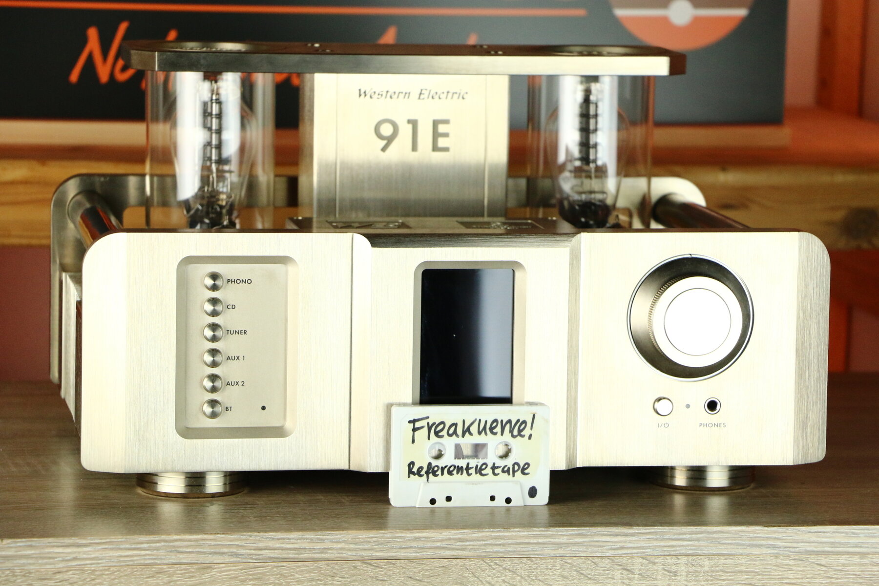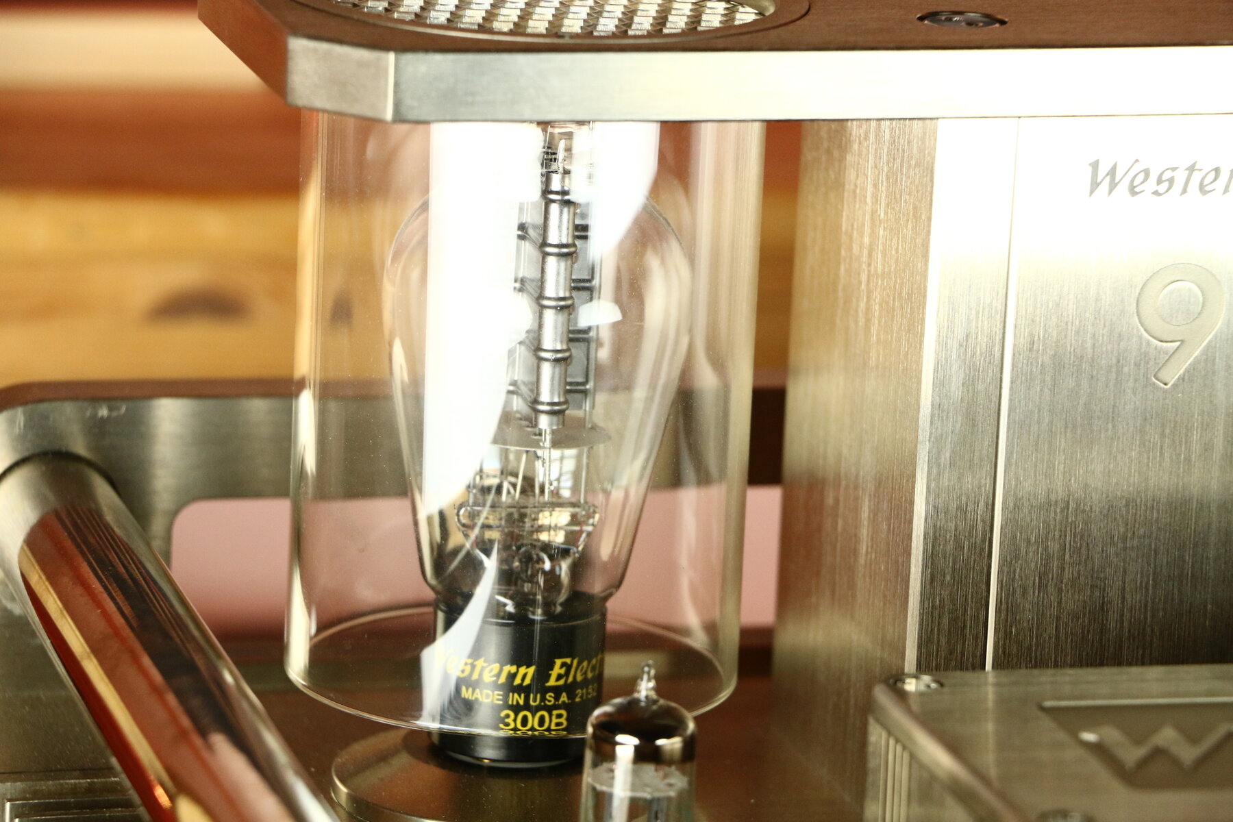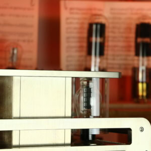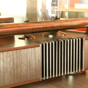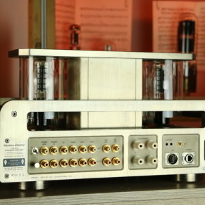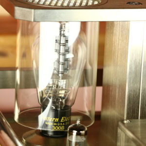L'ampli utilise une paire de tubes Western Electric 300B et deux tubes ECC81 pour la section préamplificatrice.