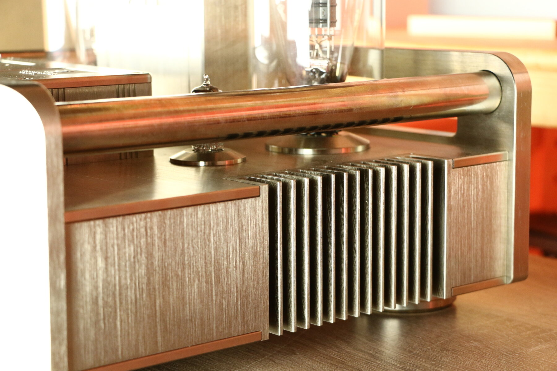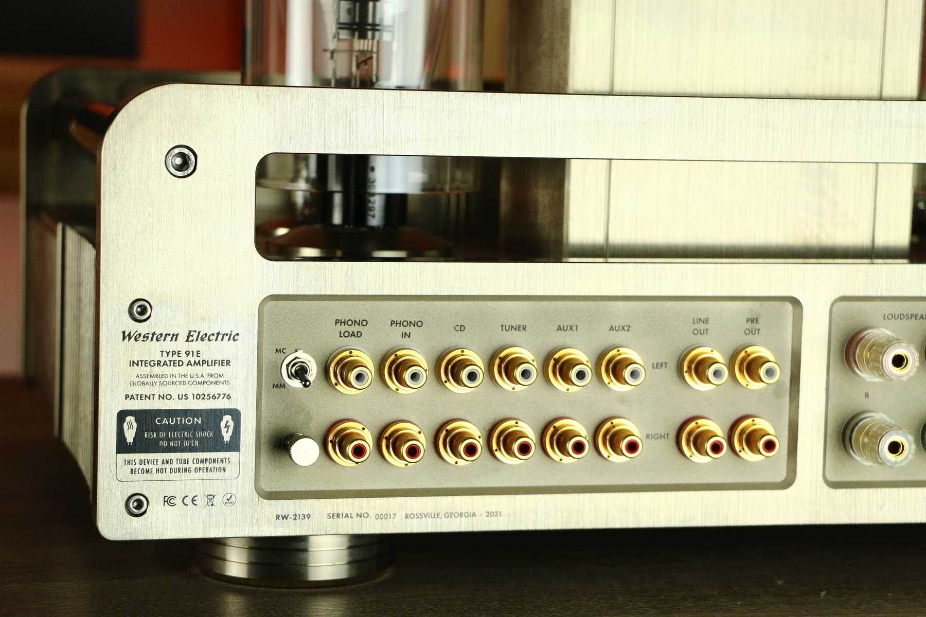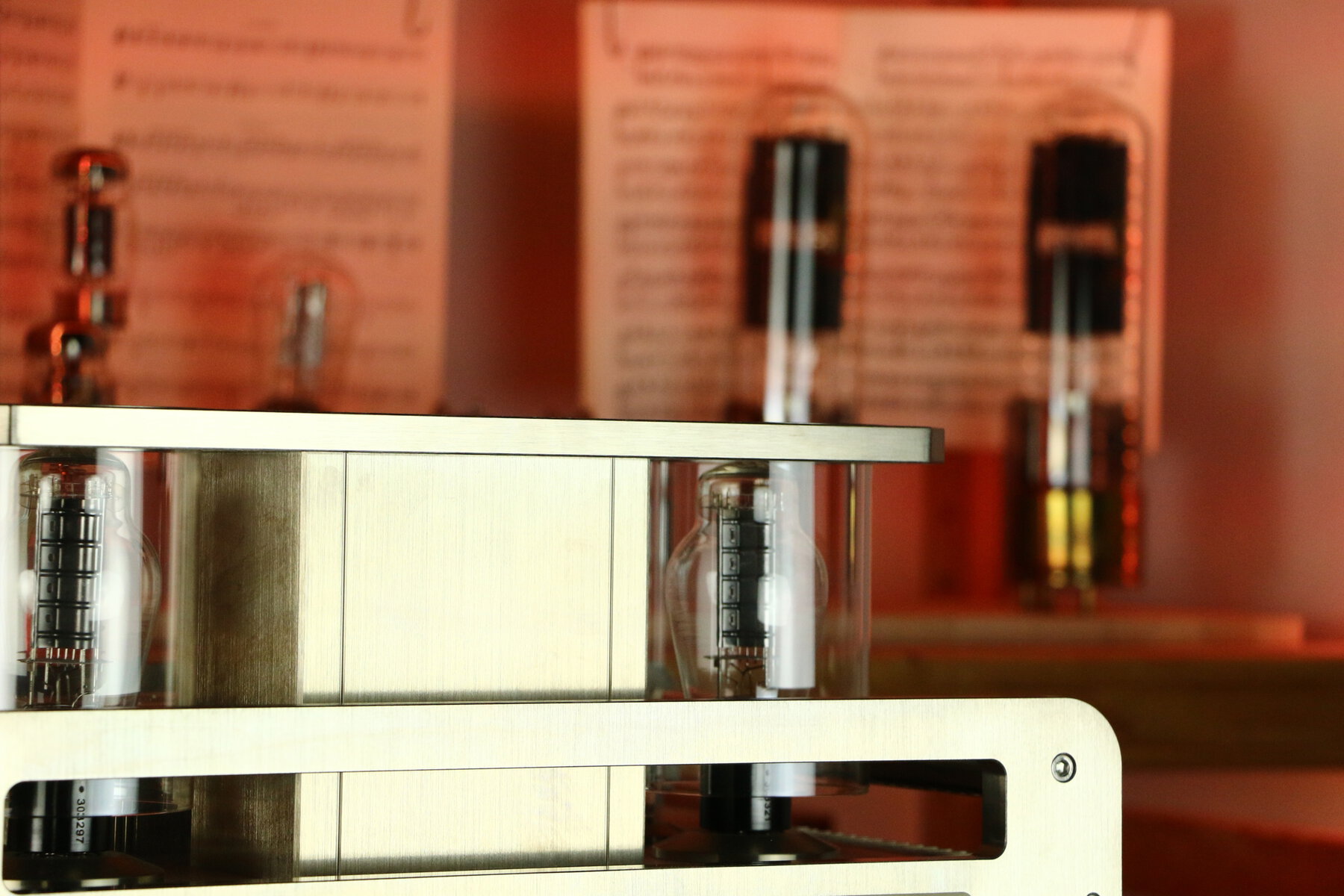 L'ampli utilise une paire de tubes Western Electric 300B et deux tubes ECC81 pour la section préamplificatrice.