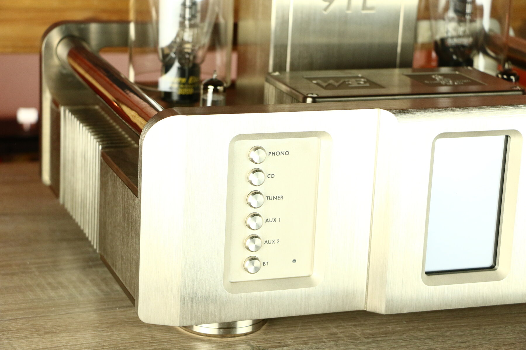 Le volume est contrôlé par un atténuateur logarithmique progressif avec des résistances discrètes dans une configuration en échelle, contrôlable avec la télécommande incluse.