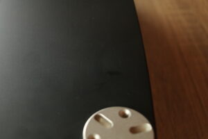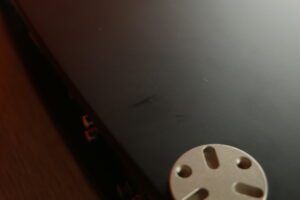 Twee veegjes aan achterzijde op bovenplaat. Val amper op, vooral met tegenlicht.