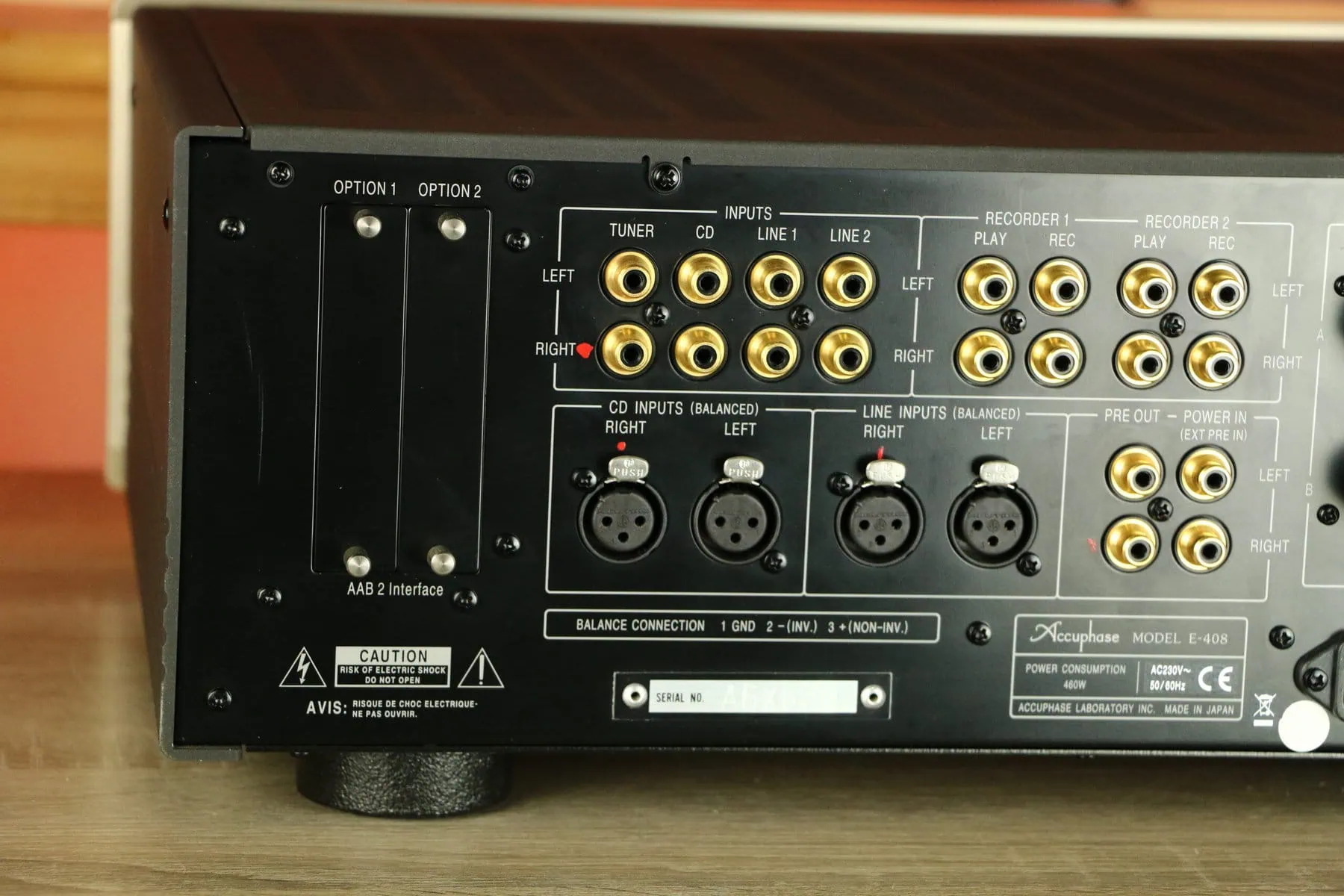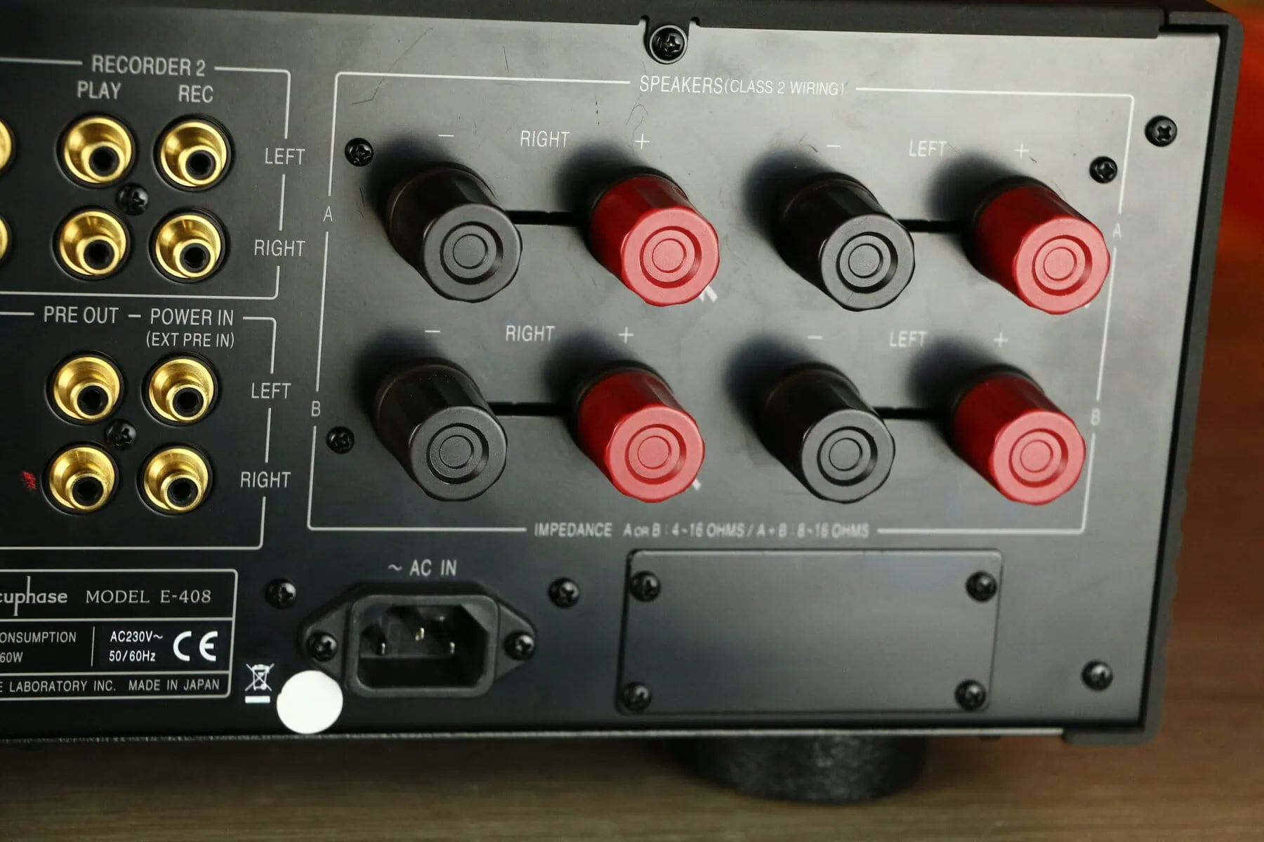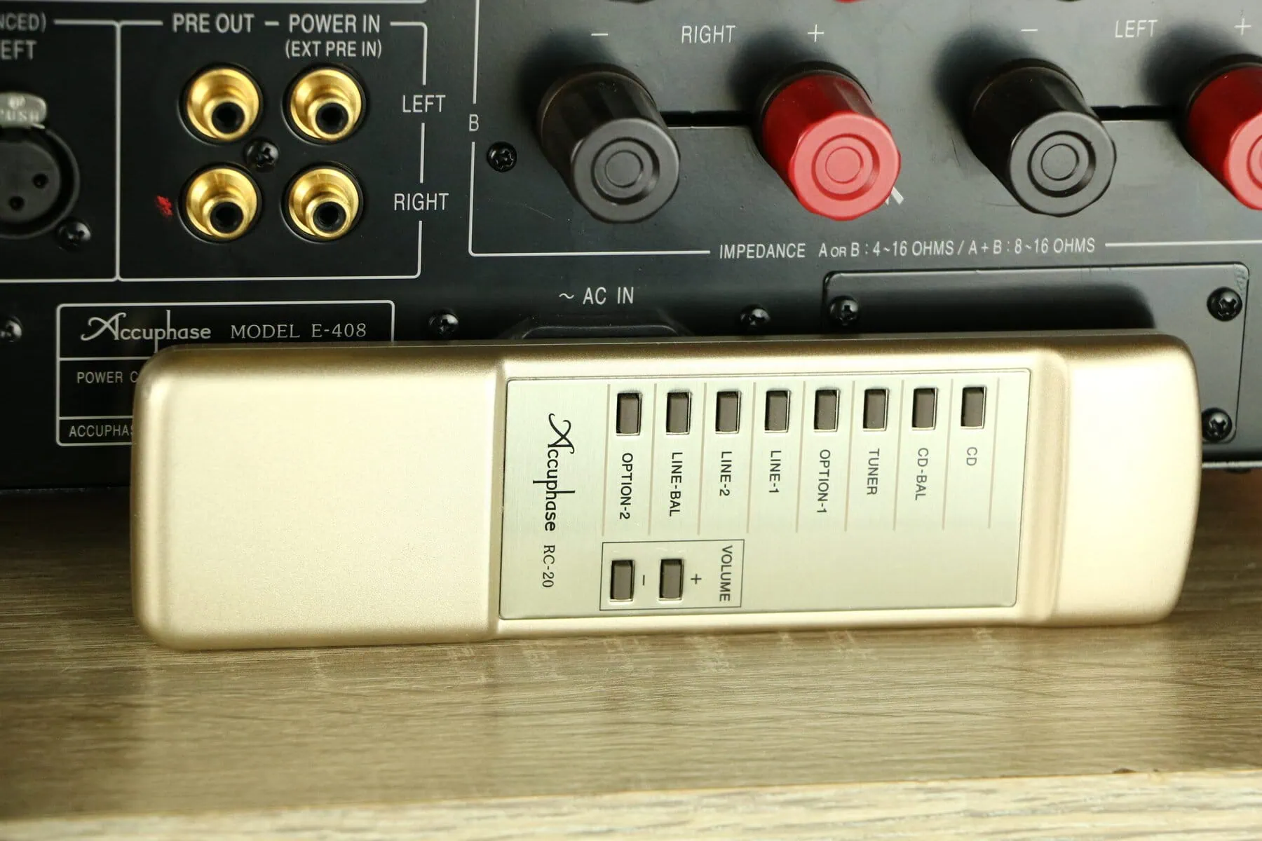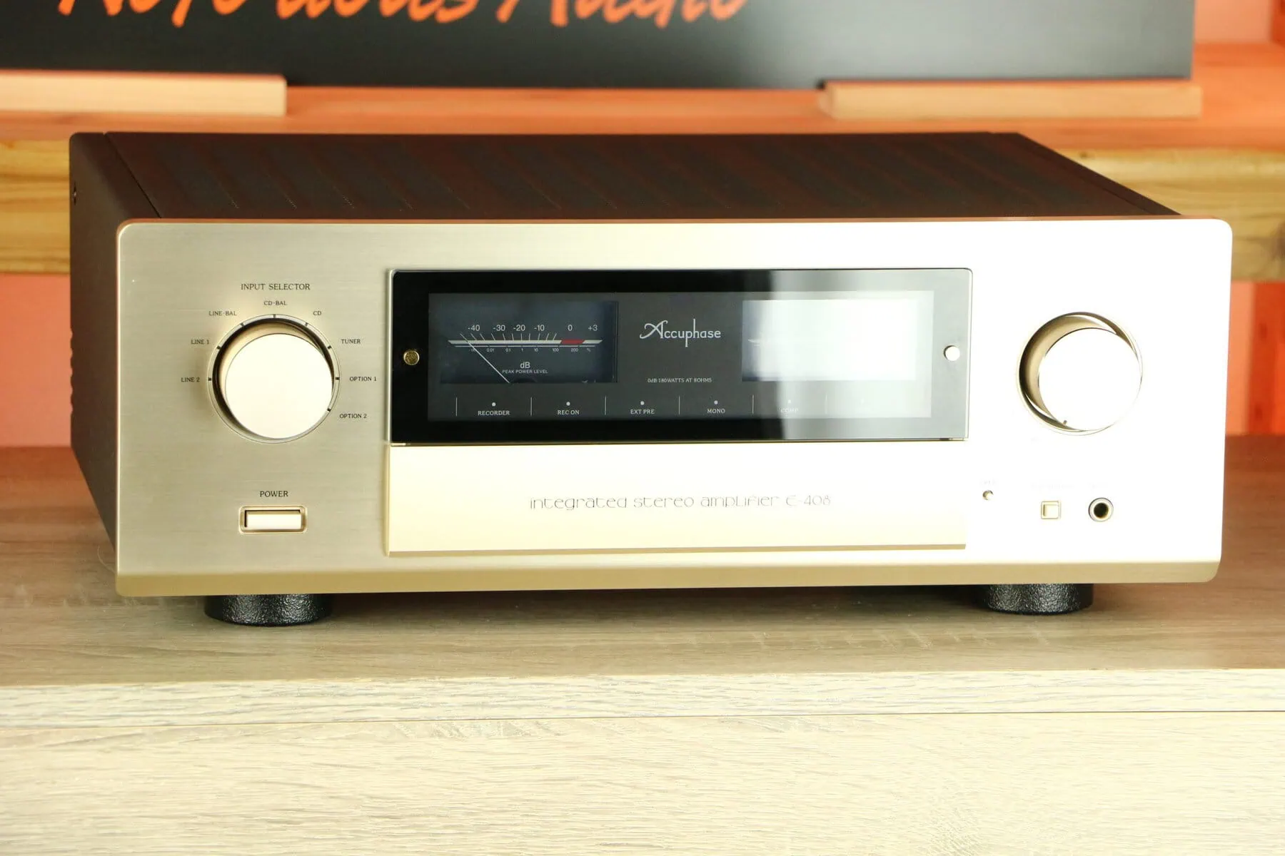 De Accuphase E-408 is een geïntegreerde versterker die bekendstaat om zijn hoogwaardige geluidsweergave en robuuste constructie. Met een vermogen van 180 watt per kanaal bij 8 ohm en 260 watt bij 4 ohm levert deze versterker voldoende kracht voor diverse luidsprekersystemen. De E-408 maakt gebruik van de MCS-topologie (Multiple Circuit Summing) in zowel de voorversterker- als eindversterkersecties, wat bijdraagt aan een verbeterde signaal-ruisverhouding en lagere vervorming. Daarnaast zorgt de huidige feedbacktechnologie voor optimale fasekarakteristieken in het hoge frequentiebereik. De versterker is uitgerust met een efficiënte R-toroïdale voedingstransformator en brede-band vermogentransistoren in een triple push-pull configuratie, wat resulteert in een stabiele en krachtige output. Voor extra flexibiliteit kunnen optionele insteekkaarten worden gebruikt om digitale ingangen of analoge platenspelerweergave van hoge kwaliteit te implementeren. Met zijn doordachte ontwerp en hoogwaardige componenten biedt de Accuphase E-408 een luisterervaring die zowel detailrijk als dynamisch is.