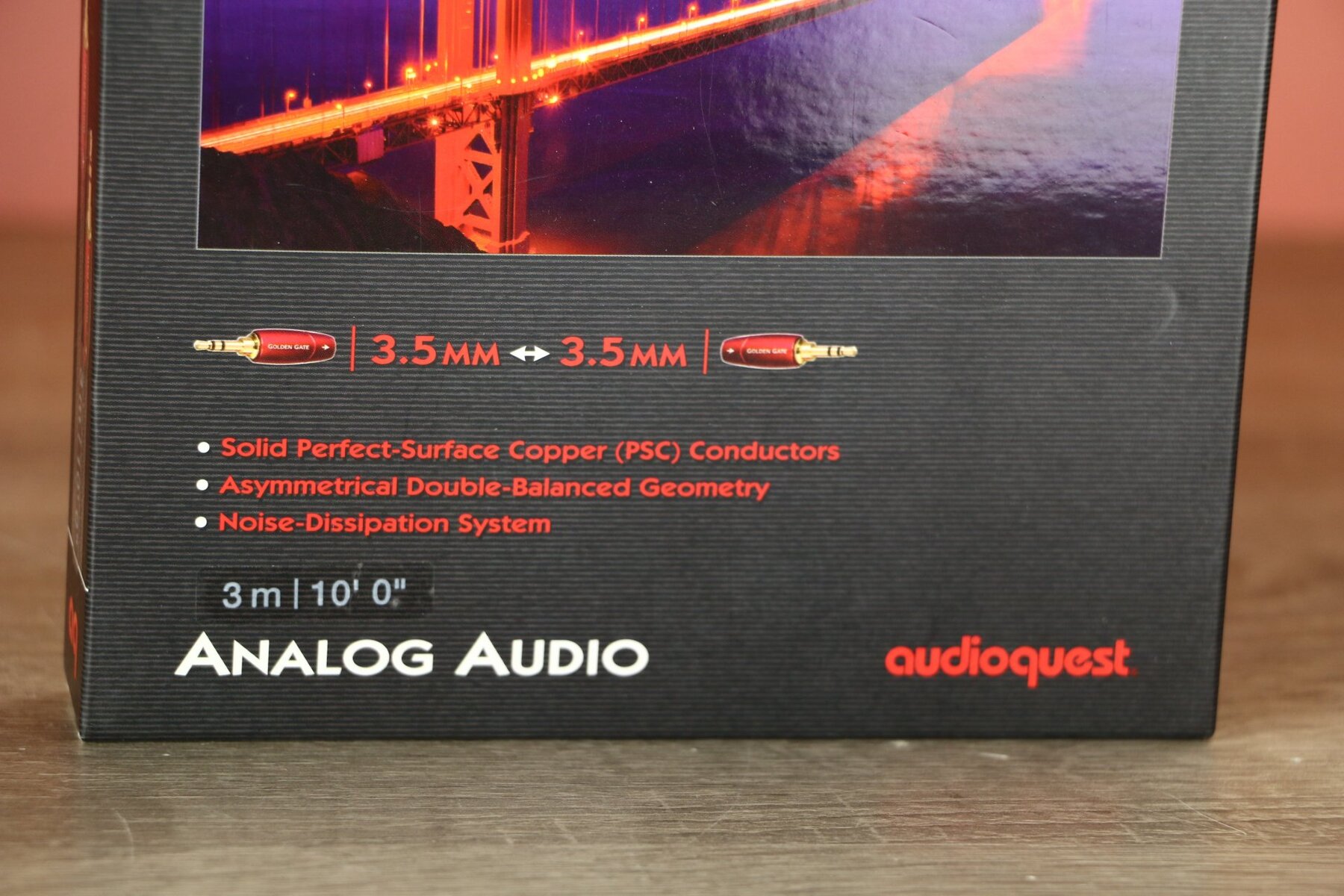 De AudioQuest Golden Gate 3.5mm <> 3.5mm mini-jack van 300 cm is ontworpen volgens AudioQuests "Noise-Dissipation" filosofie. Het gebruikt massieve PSC+ (Perfect-Surface Copper+) geleiders voor minimale vervorming, en een asymmetrische dubbele gebalanceerde geometrie voor helder geluid. De cold-welded vergulde connectors zorgen voor een betere signaaloverdracht zonder soldeer. Ontwikkeld onder toezicht van AudioQuest-oprichter William E. Low.