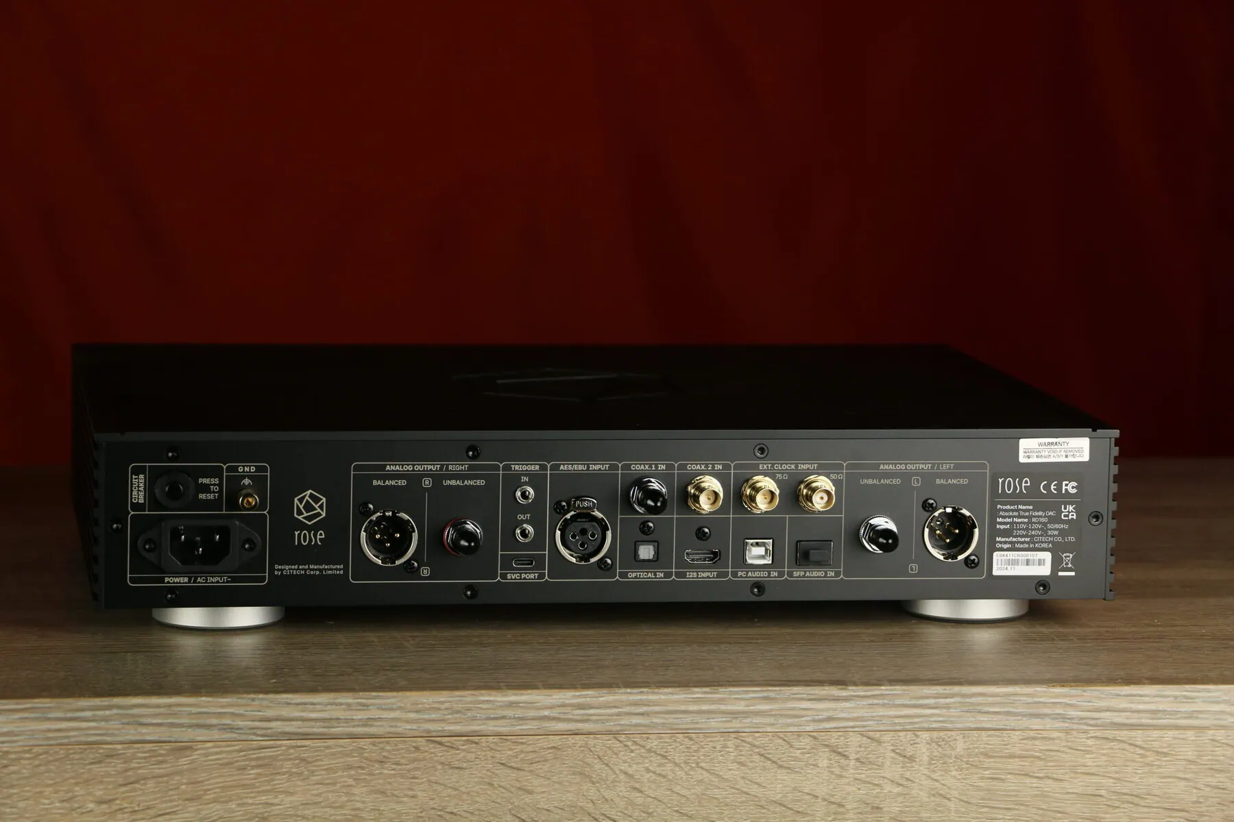 Hoppa! De dedicated dac van Hifi Rose. We hebben de andere spullen al wat jaren in huis en na de RS130-streamer (zonder dac) vonden ook wij het tijd voor een serieuze dac. Warm en rijk, zoals we van Rose gewend zijn, maar op een veel hoger niveau dan de interne dac’s van hun dac-streamers. Lekker! De bediening roept ook nu weer geen vraagtekens op, de bouw straalt vertrouwen uit. De bescheiden lampjes achter panelen zijn wat ons betreft gaaf, hierdoor is optisch combineren met de RS130 zeer goed te doen.