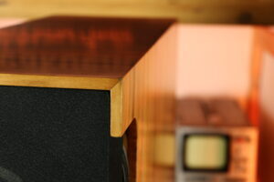 Naast wat plekjes ook een vervelende schaaf uit het fineer aan de zijkant, bij achterzijde speakers. Zie foto’s.