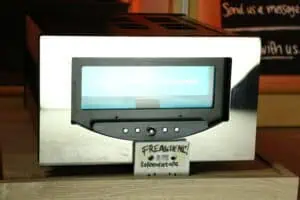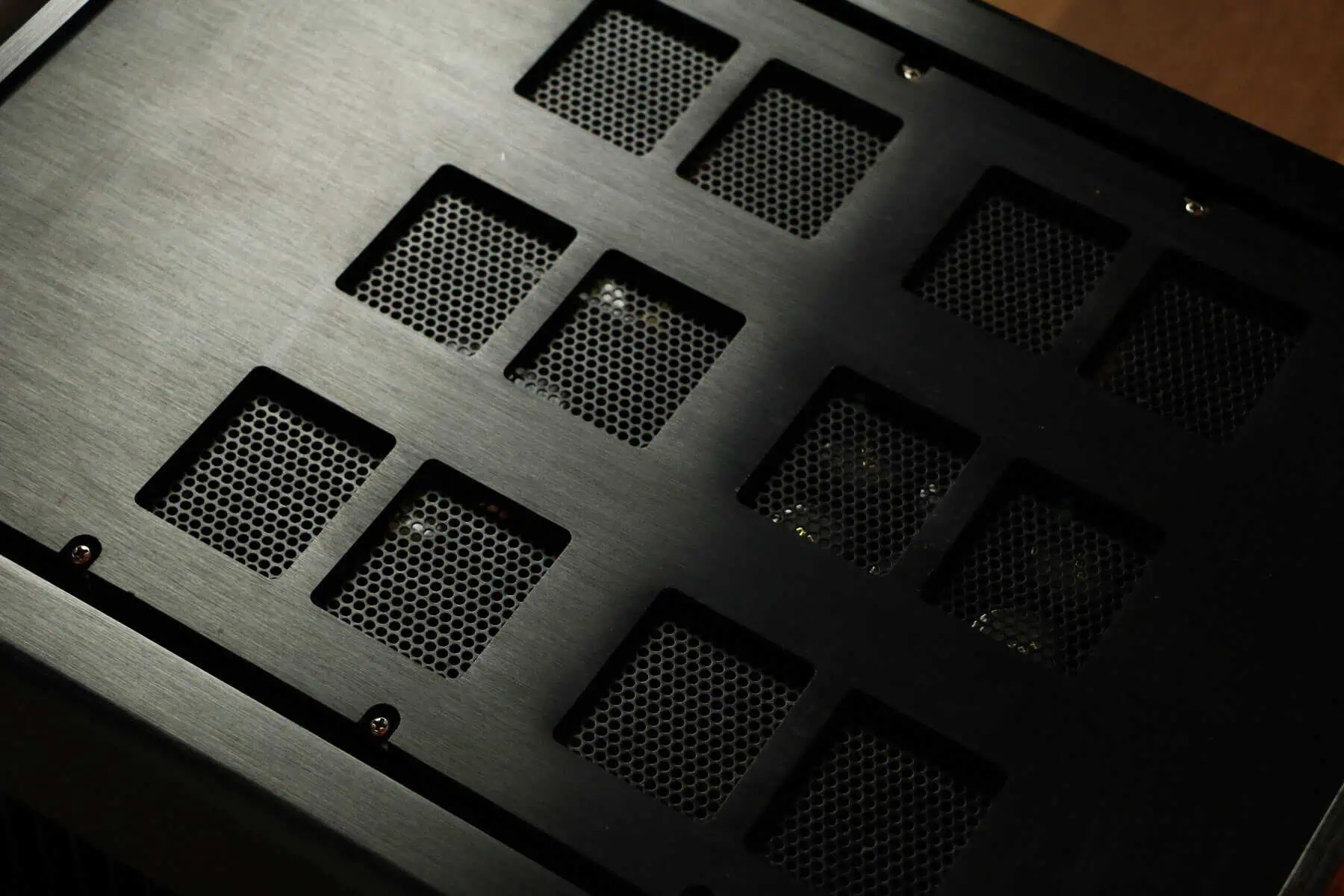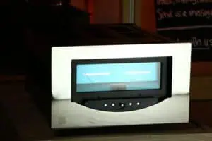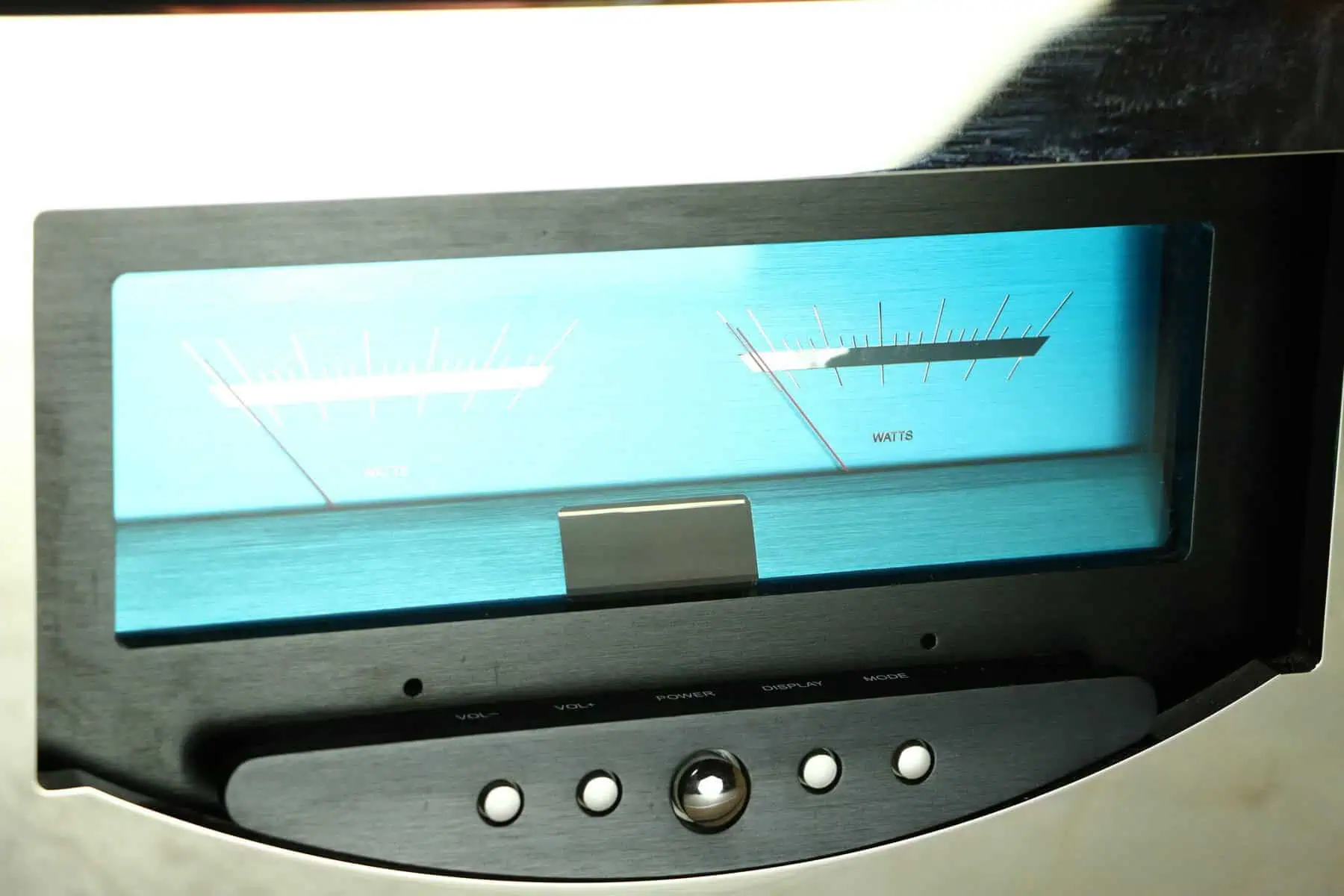 Met zijn robuuste bouw en een voorpaneel van gepolijst roestvrij staal straalt hij een indrukwekkende aanwezigheid uit. De blauwe verlichting van de VU-meters liegen er niet om. Nee, ze geven aan. Krachtige stabiele amp!